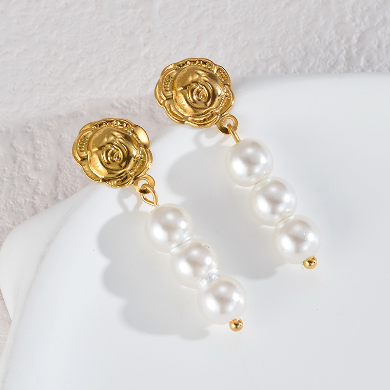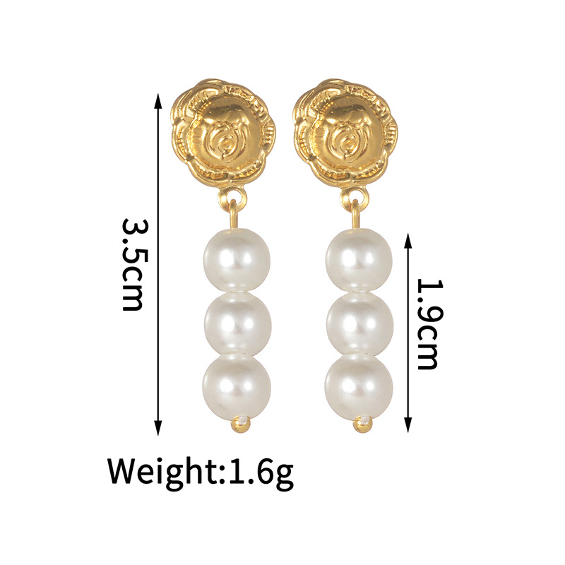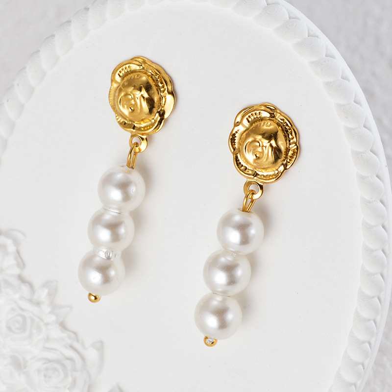 Boucle d'oreille goutte inox, Acier inoxydable 304, avec perle de plastique, Placage, bijoux de mode & pour femme, doré, Vendu par paire