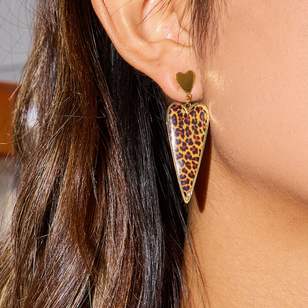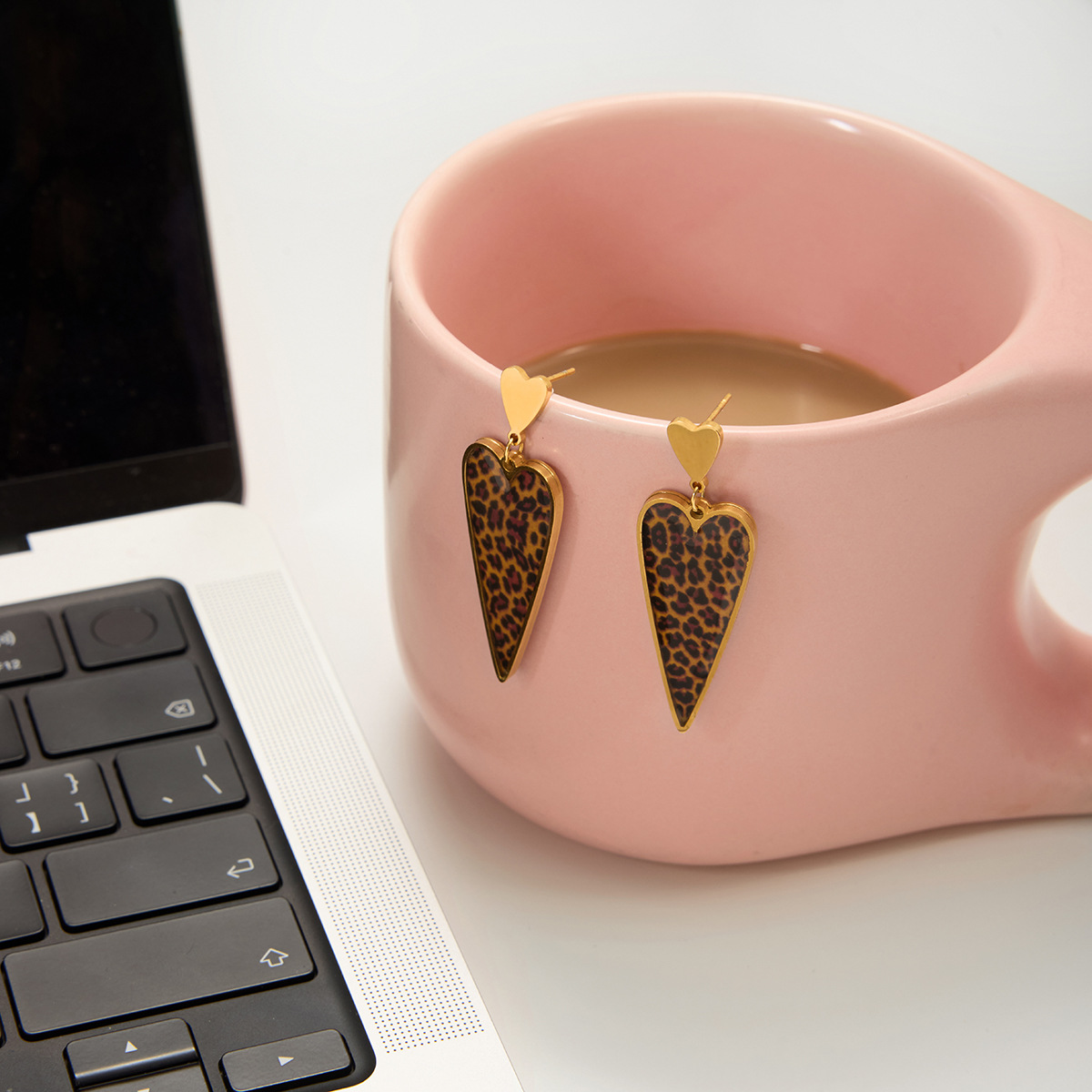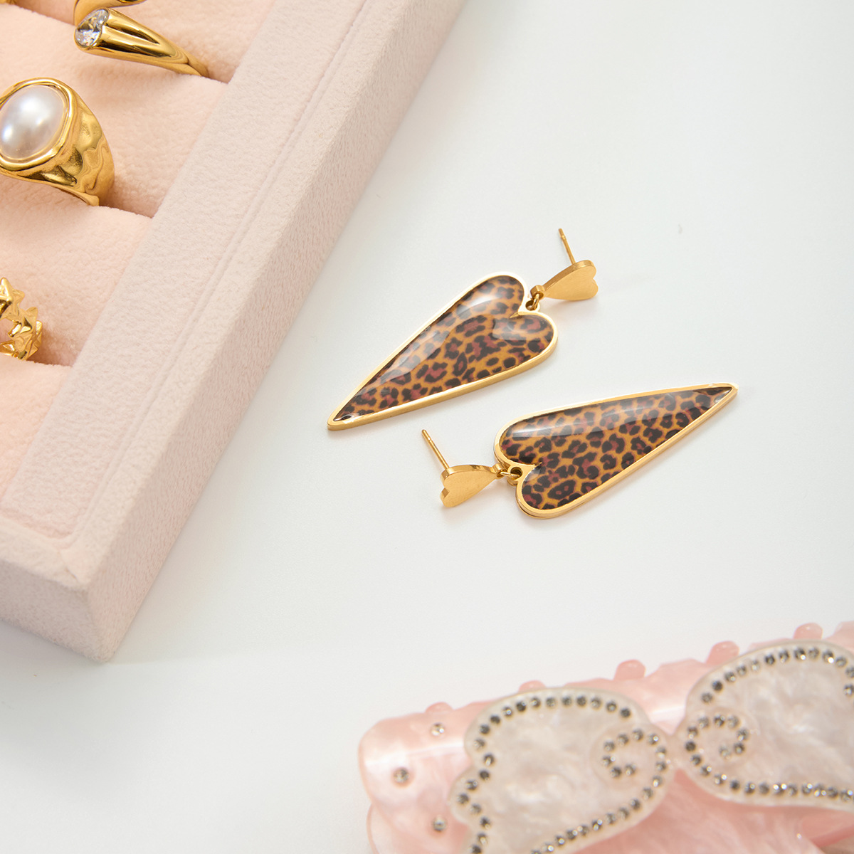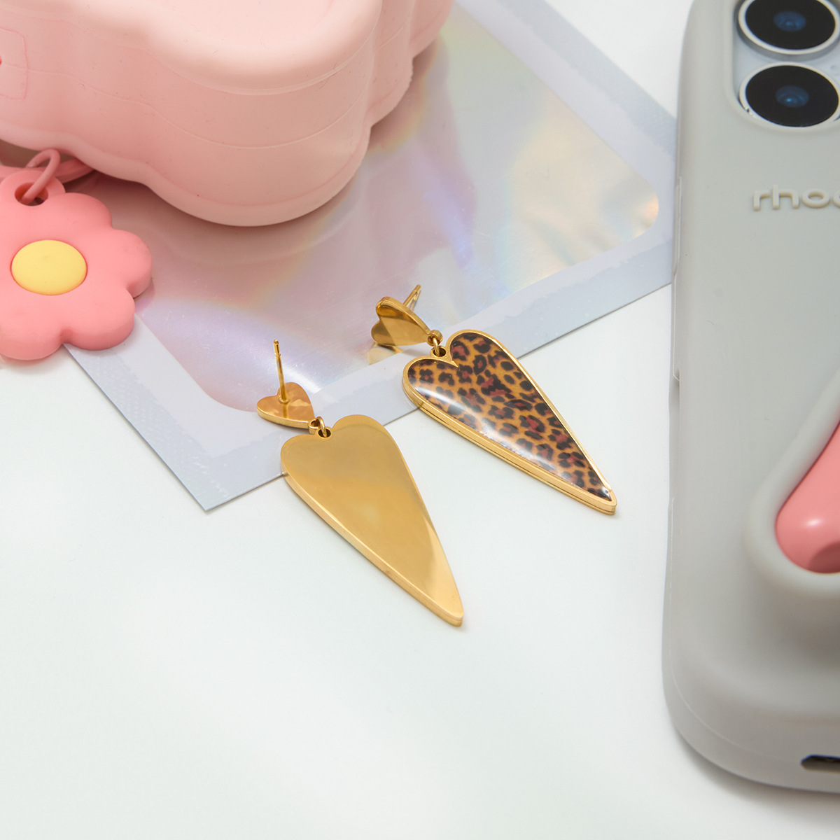 Boucle d'oreille goutte inox, Acier inoxydable 304, coeur, Placage, bijoux de mode & pour femme & émail, doré, Vendu par paire