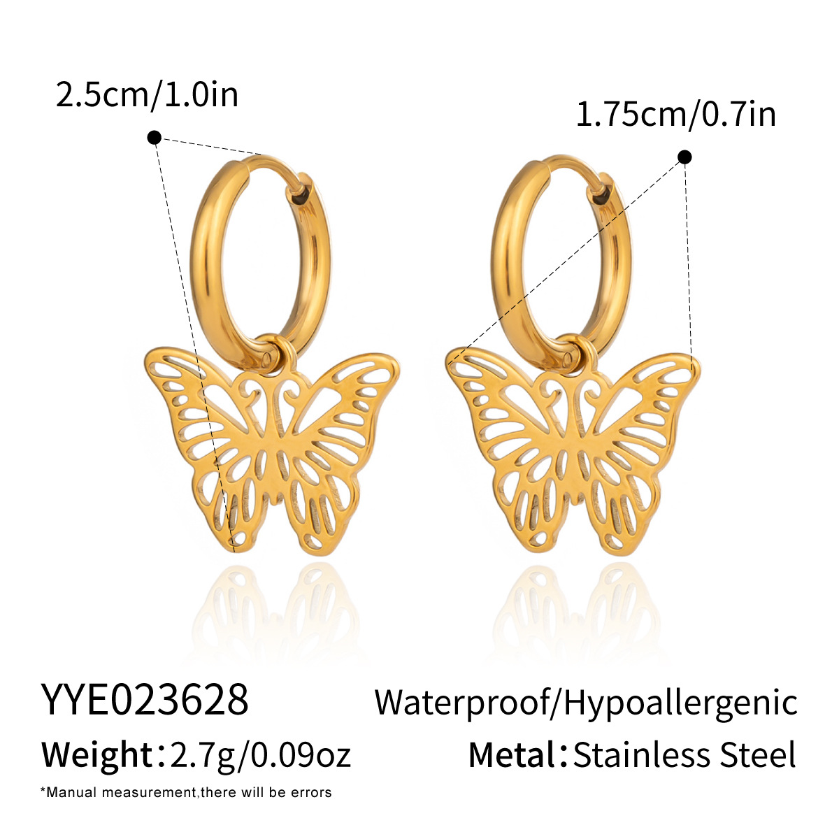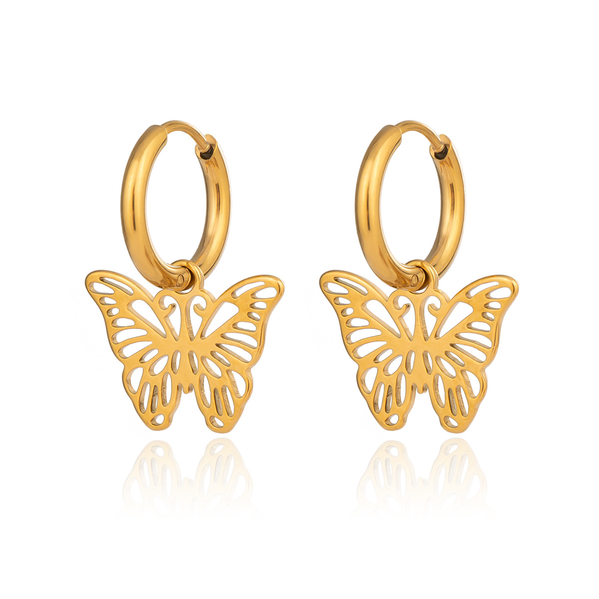 Boucle d'oreille goutte inox, Acier inoxydable 304, papillon, Placage, bijoux de mode & pour femme & creux, doré, Vendu par paire