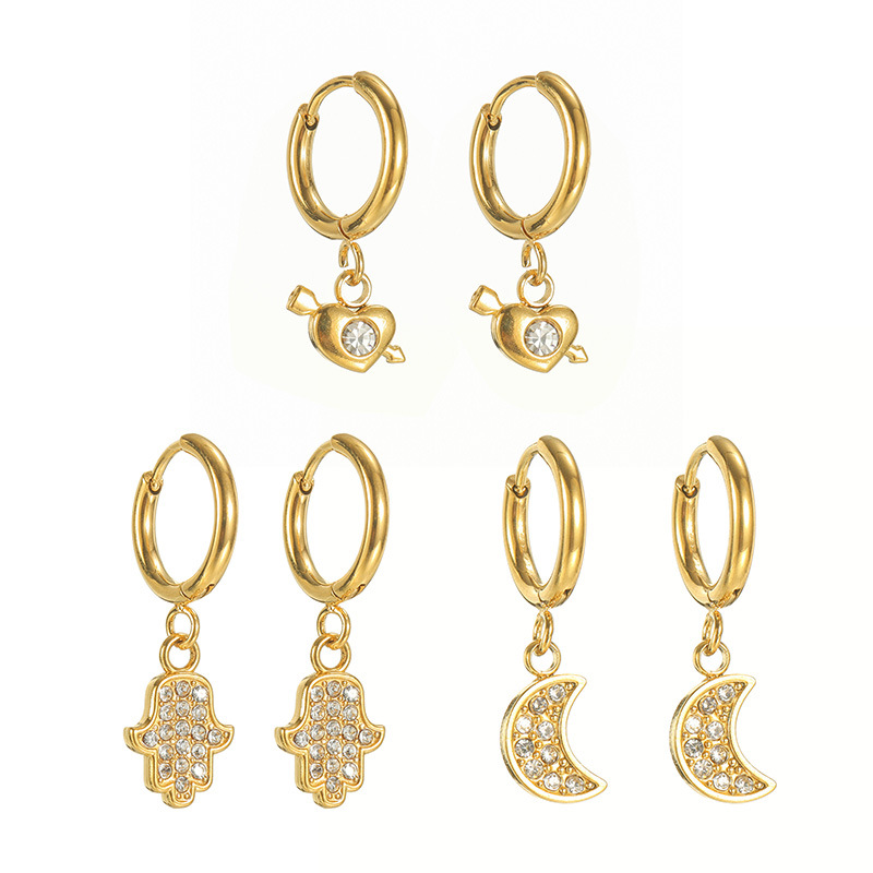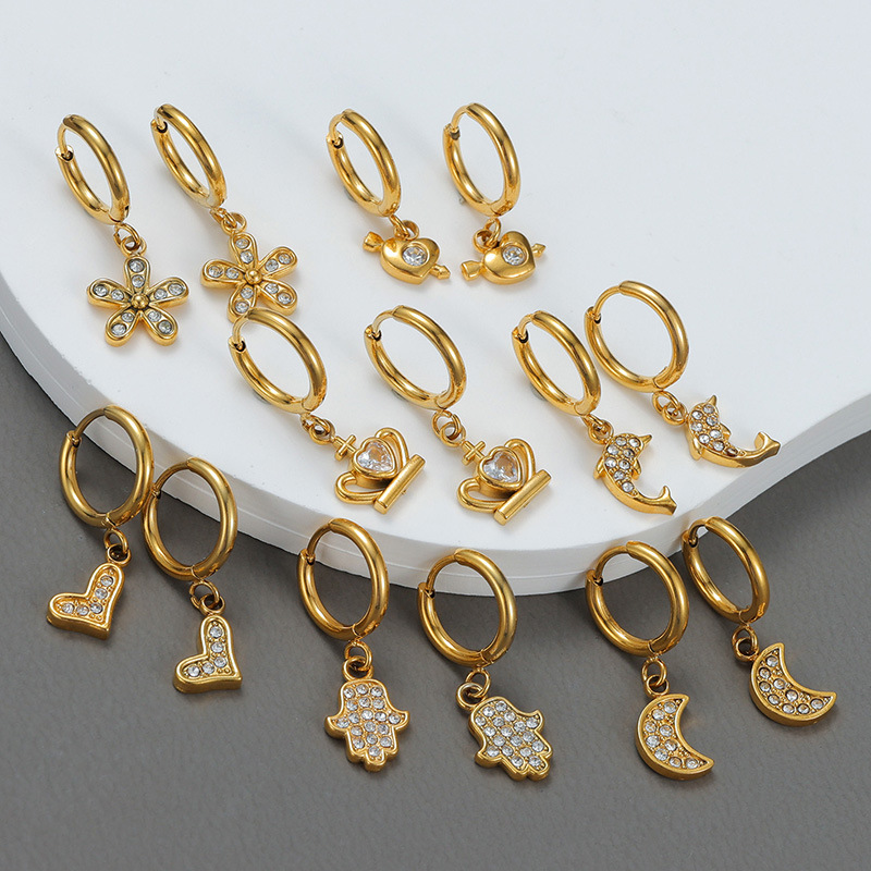 Boucle d'oreille goutte inox, Acier inoxydable 304, Plaqué or 18K, styles différents pour le choix & pour femme & avec strass, Vendu par PC