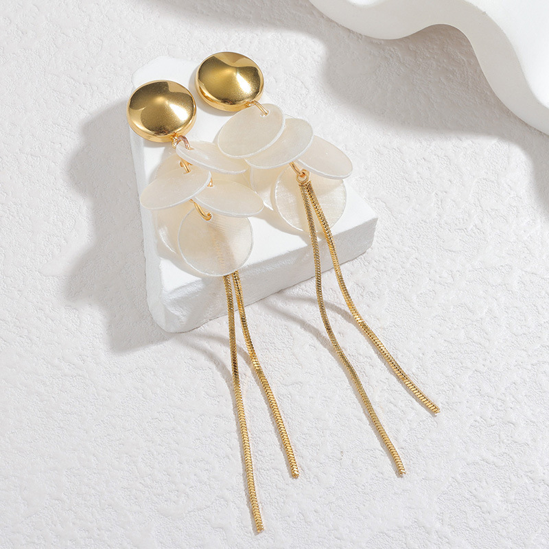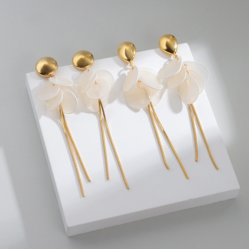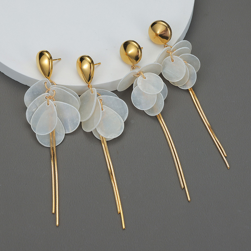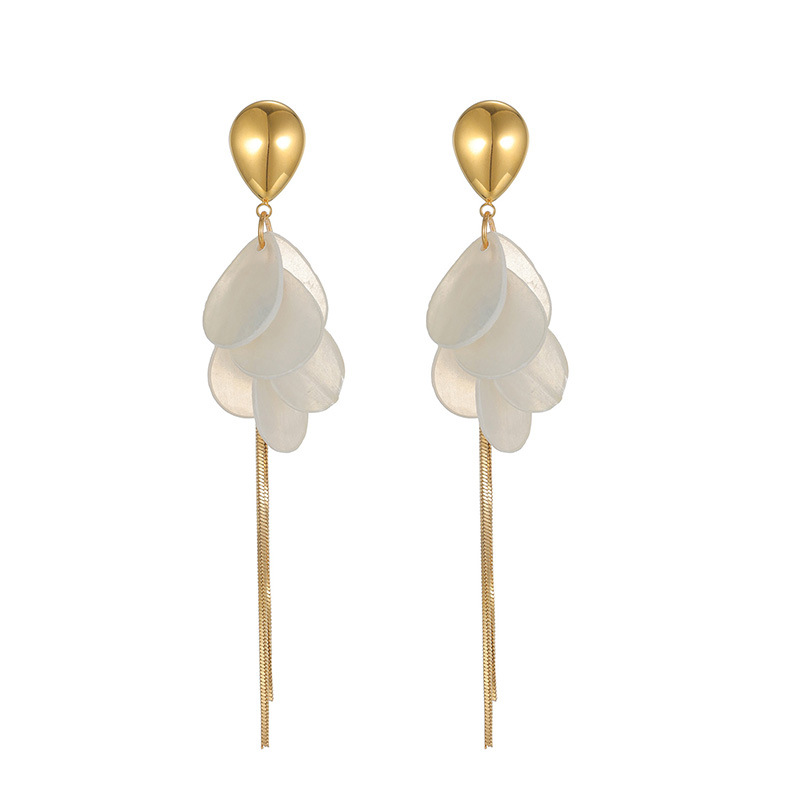 Boucle d'oreille goutte inox, Acier inoxydable 304, avec coquille, Placage, bijoux de mode & styles différents pour le choix & pour femme, doré, Vendu par paire