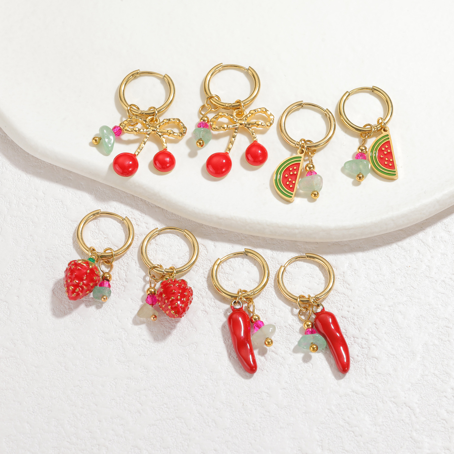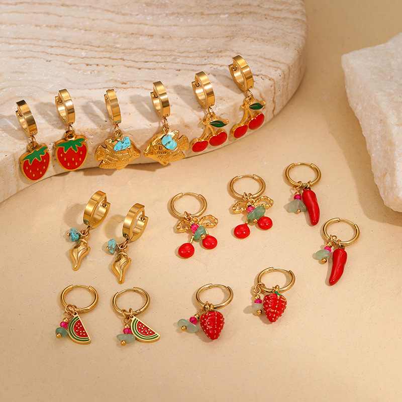 Boucle d'oreille goutte inox, Acier inoxydable 304, Placage de couleur d'or, styles différents pour le choix & pour femme & émail, Vendu par paire