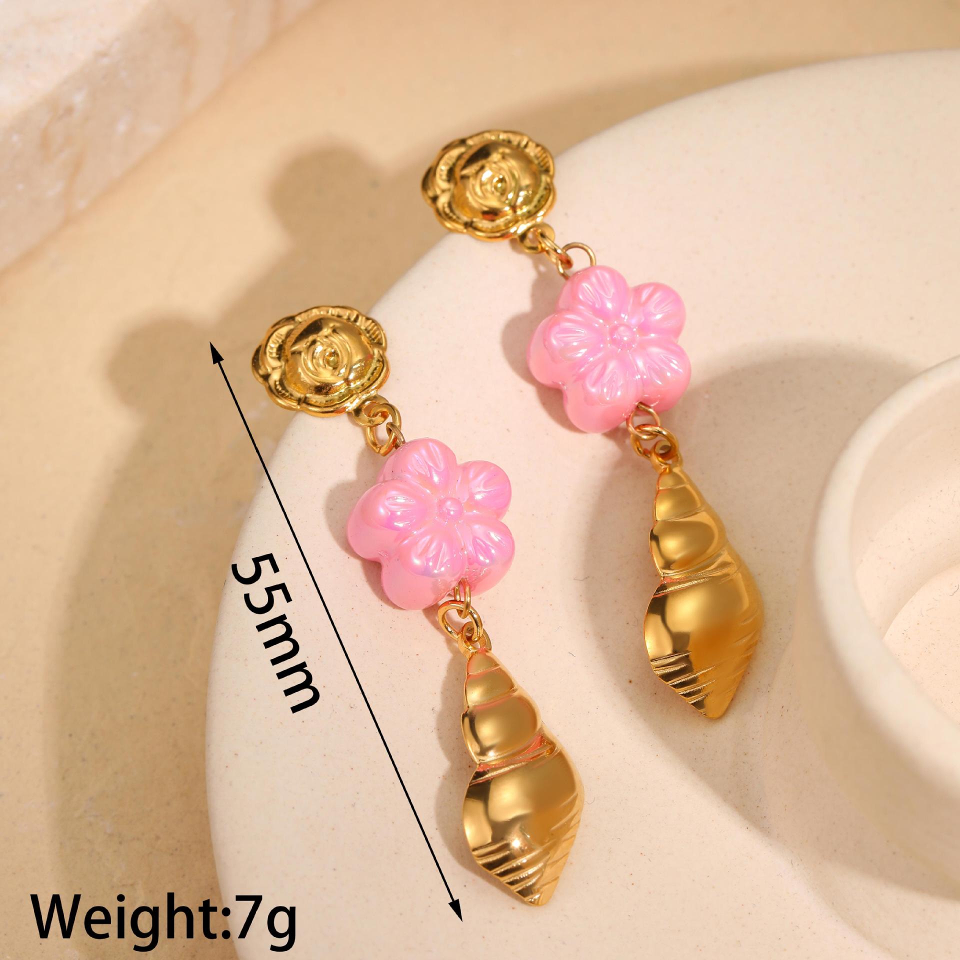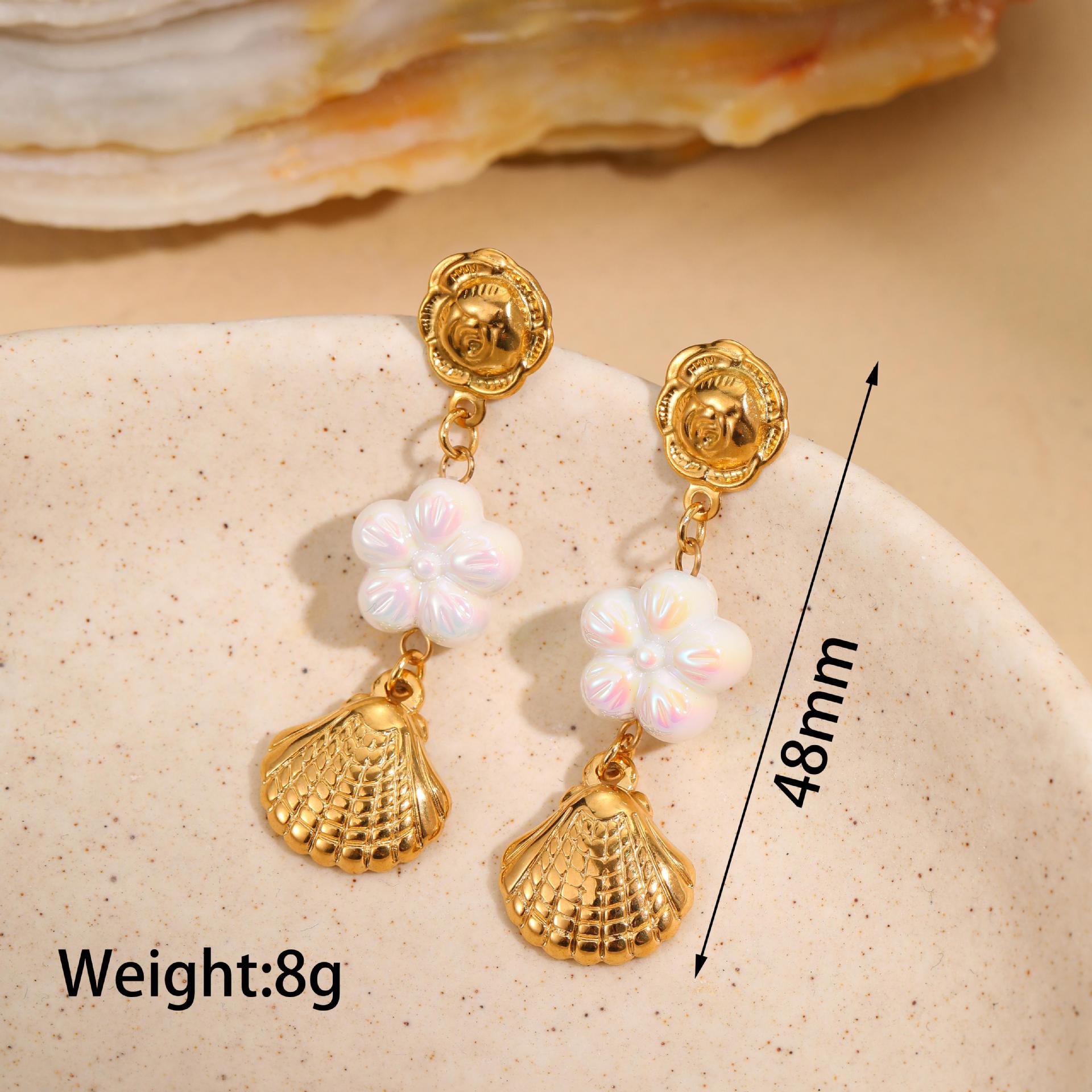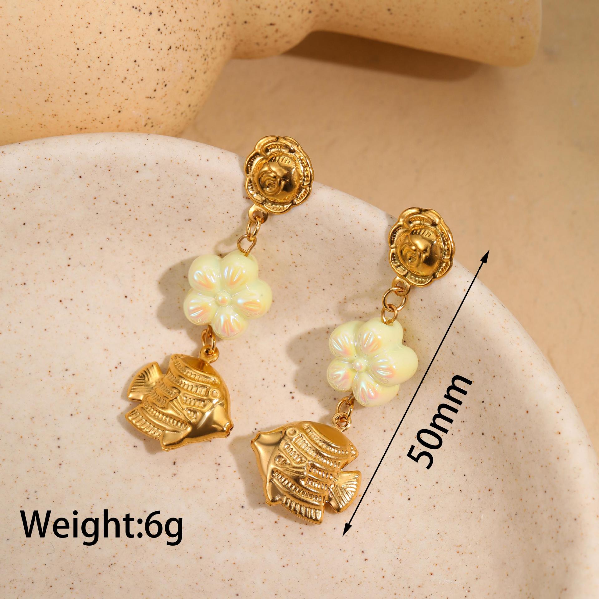 Boucle d'oreille goutte inox, Acier inoxydable 304, avec résine & perle de plastique, Placage, bijoux de mode & styles différents pour le choix & pour femme, doré, Vendu par paire