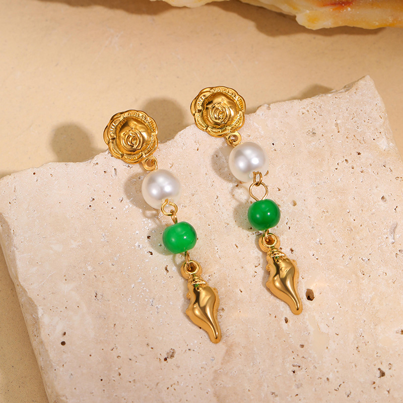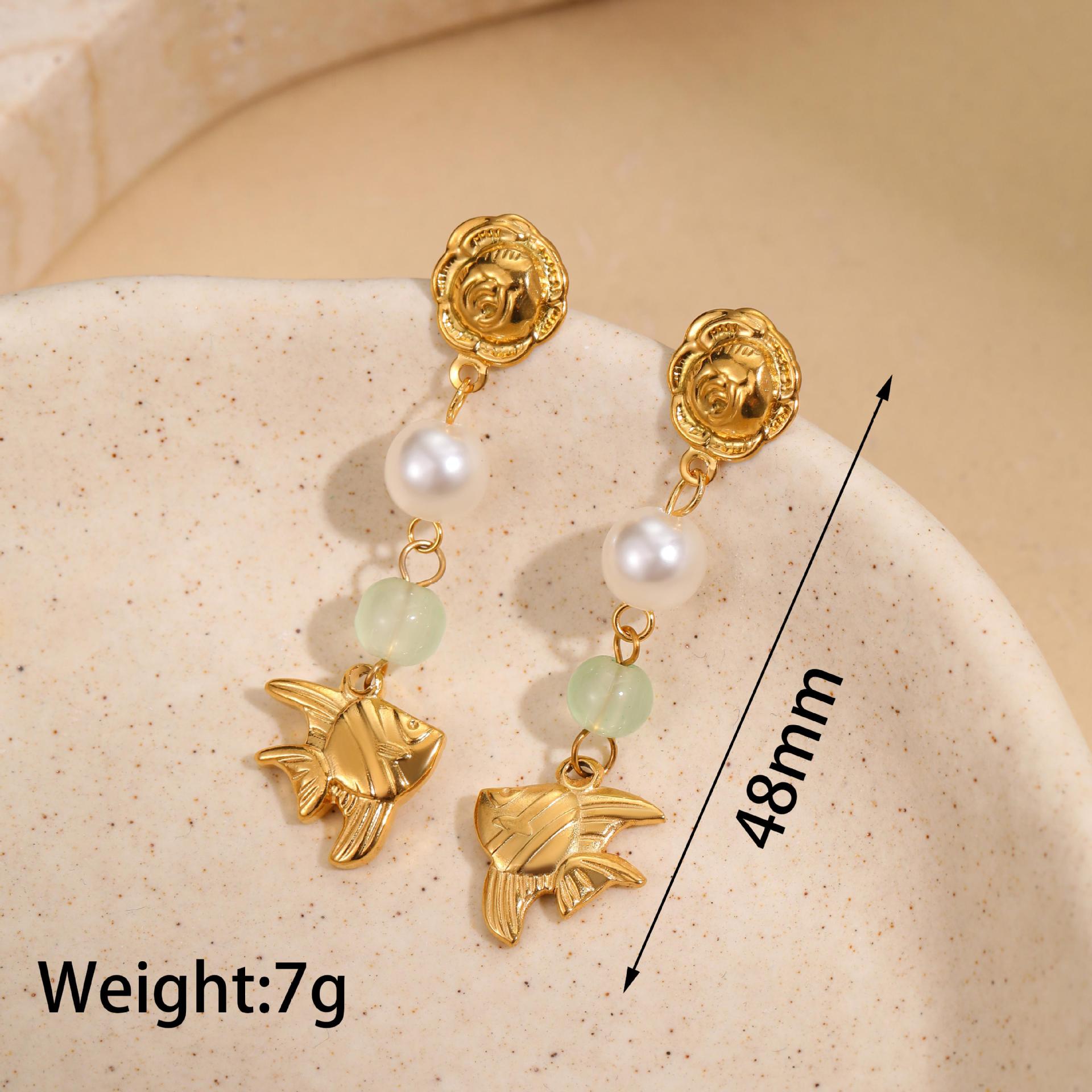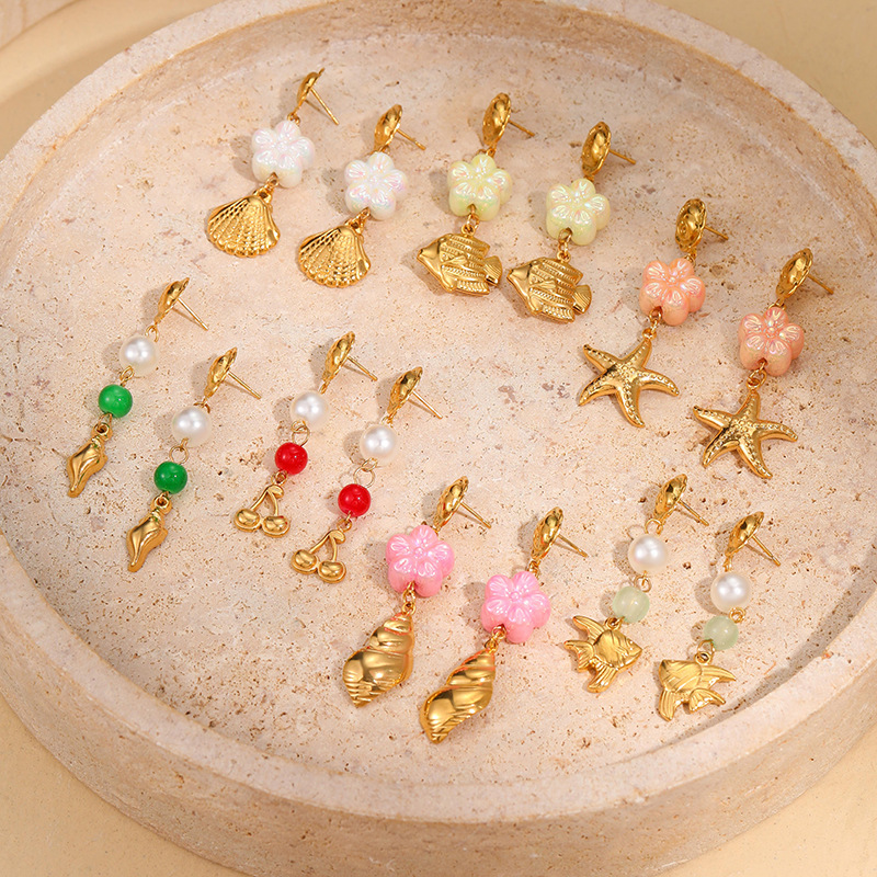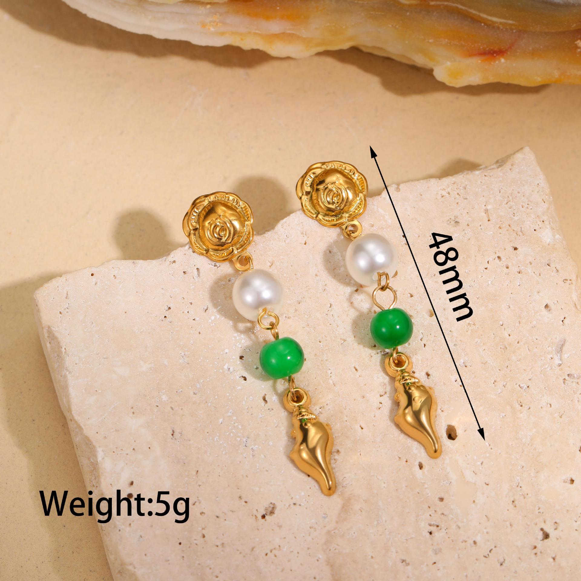 Boucle d'oreille goutte inox, Acier inoxydable 304, avec résine & perle de plastique, Placage, bijoux de mode & styles différents pour le choix & pour femme, doré, Vendu par paire