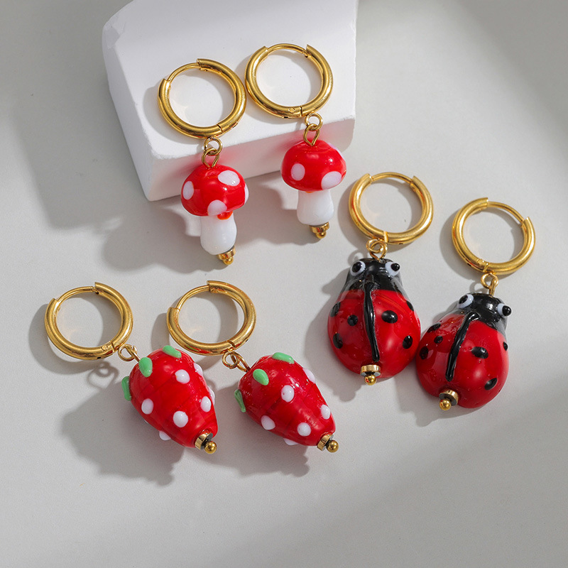 Boucle d'oreille goutte inox, Acier inoxydable 304, avec chalumeau, Plaqué or 18K, bijoux de mode & styles différents pour le choix & pour femme, Vendu par paire