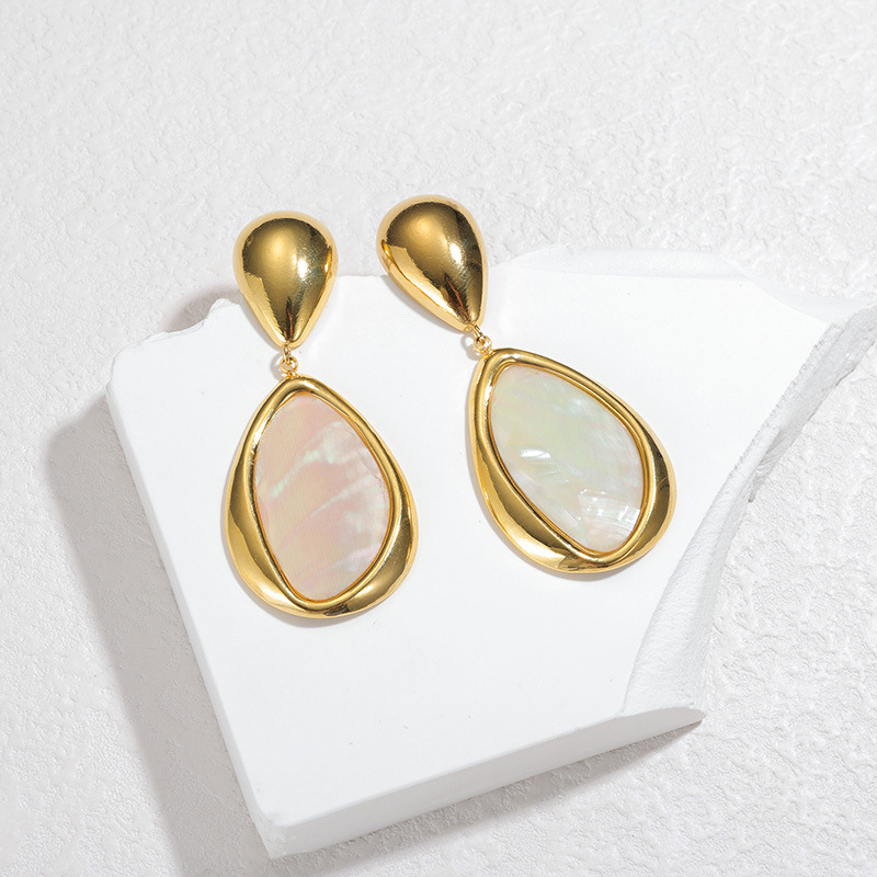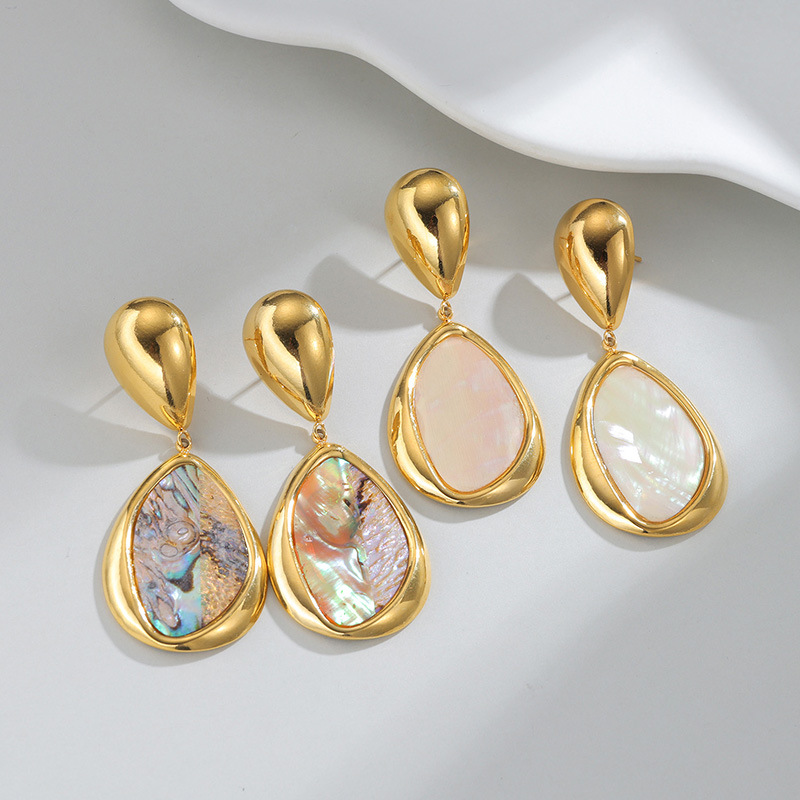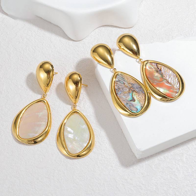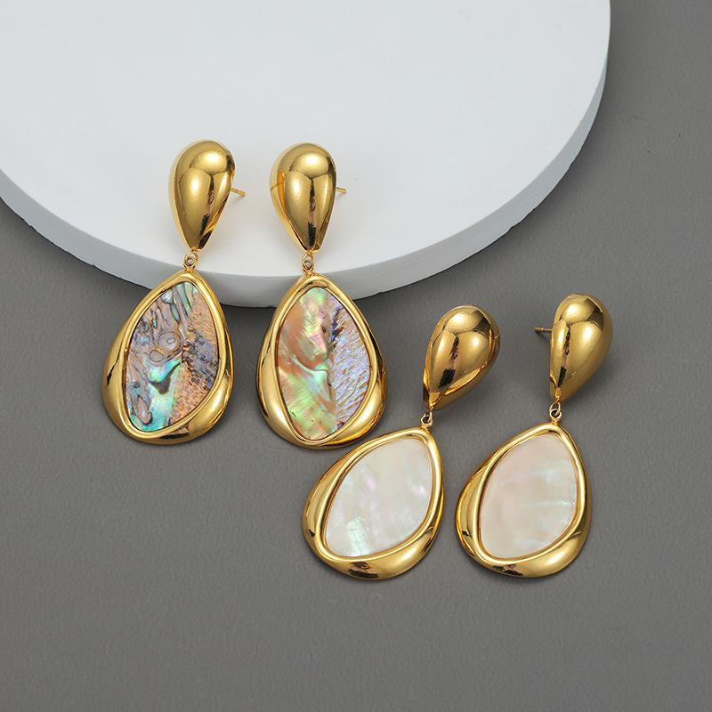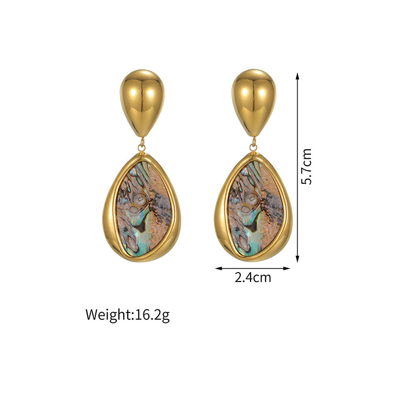 Boucle d'oreille goutte inox, Acier inoxydable 304, avec coquille d'ormeau, larme, Placage, bijoux de mode & différents matériaux pour le choix & pour femme, doré, Vendu par paire
