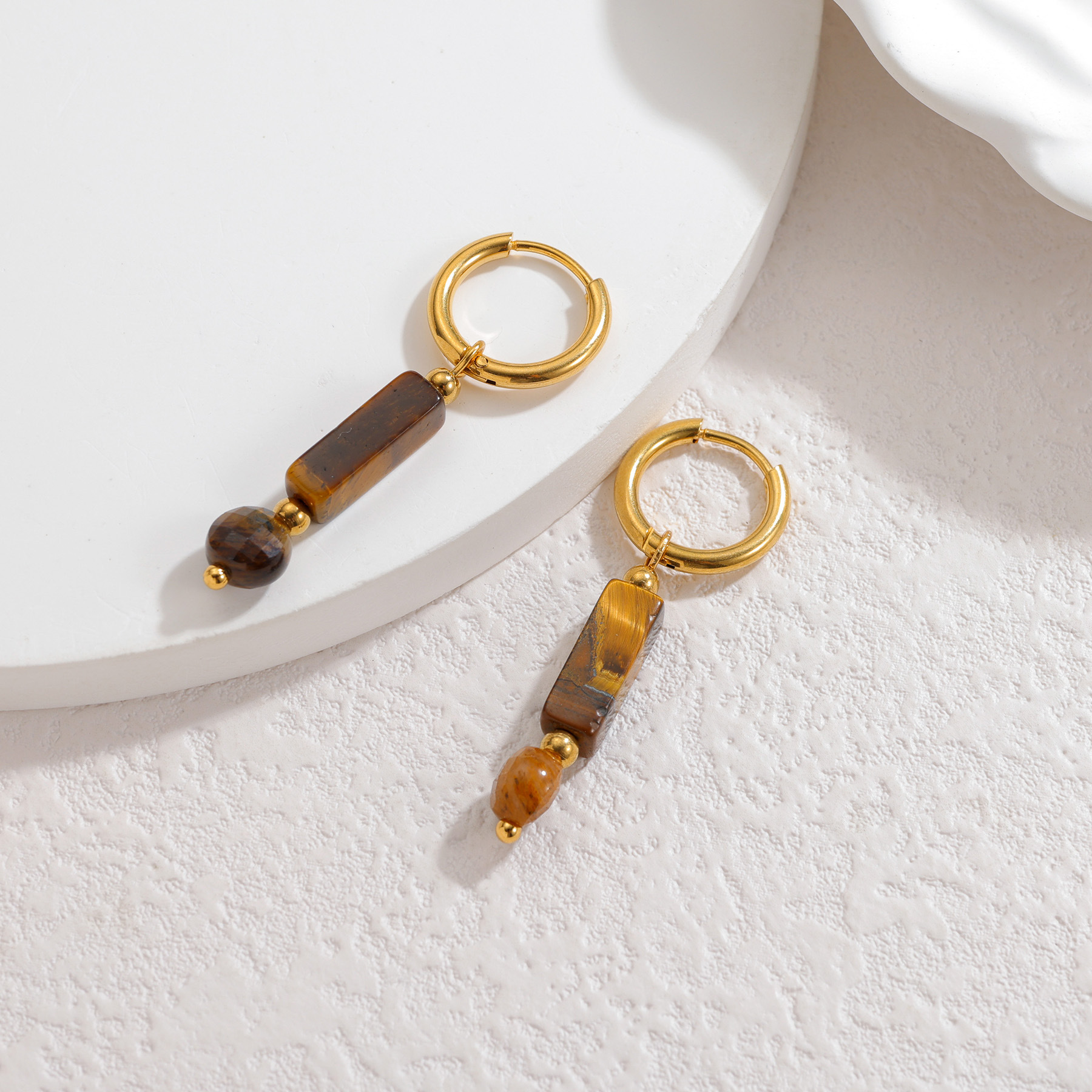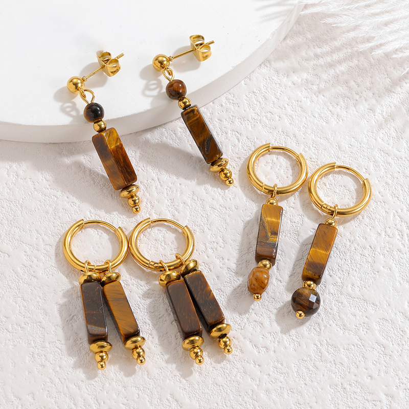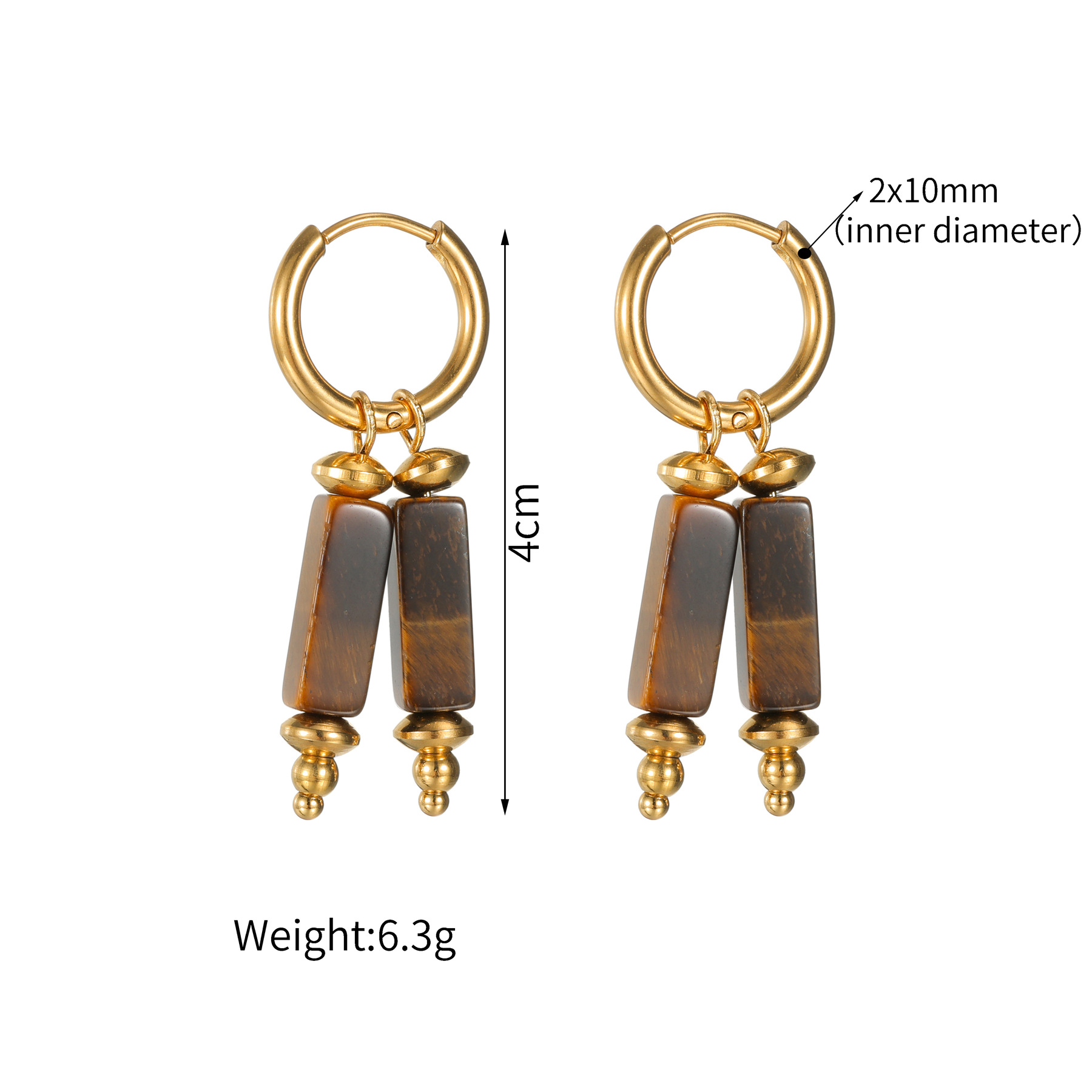 Boucle d'oreille goutte inox, Acier inoxydable 304, avec oeil de tigre, Placage, bijoux de mode & styles différents pour le choix & pour femme, doré, Vendu par paire