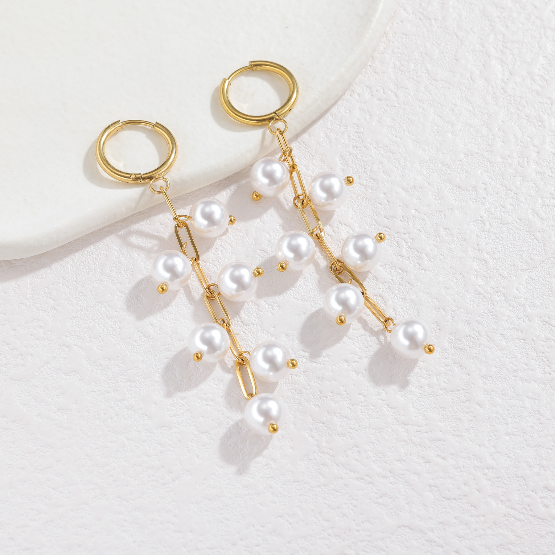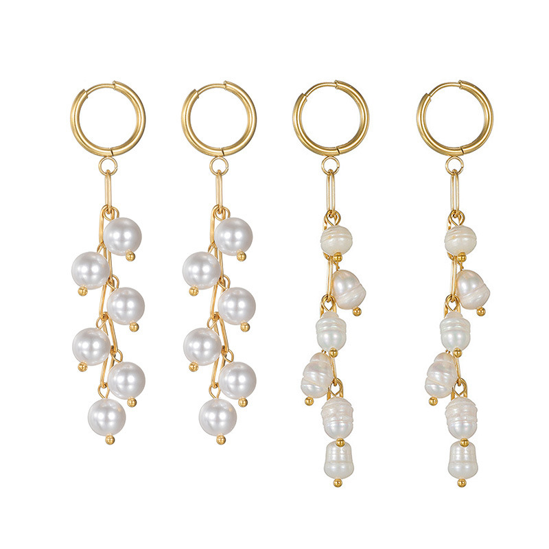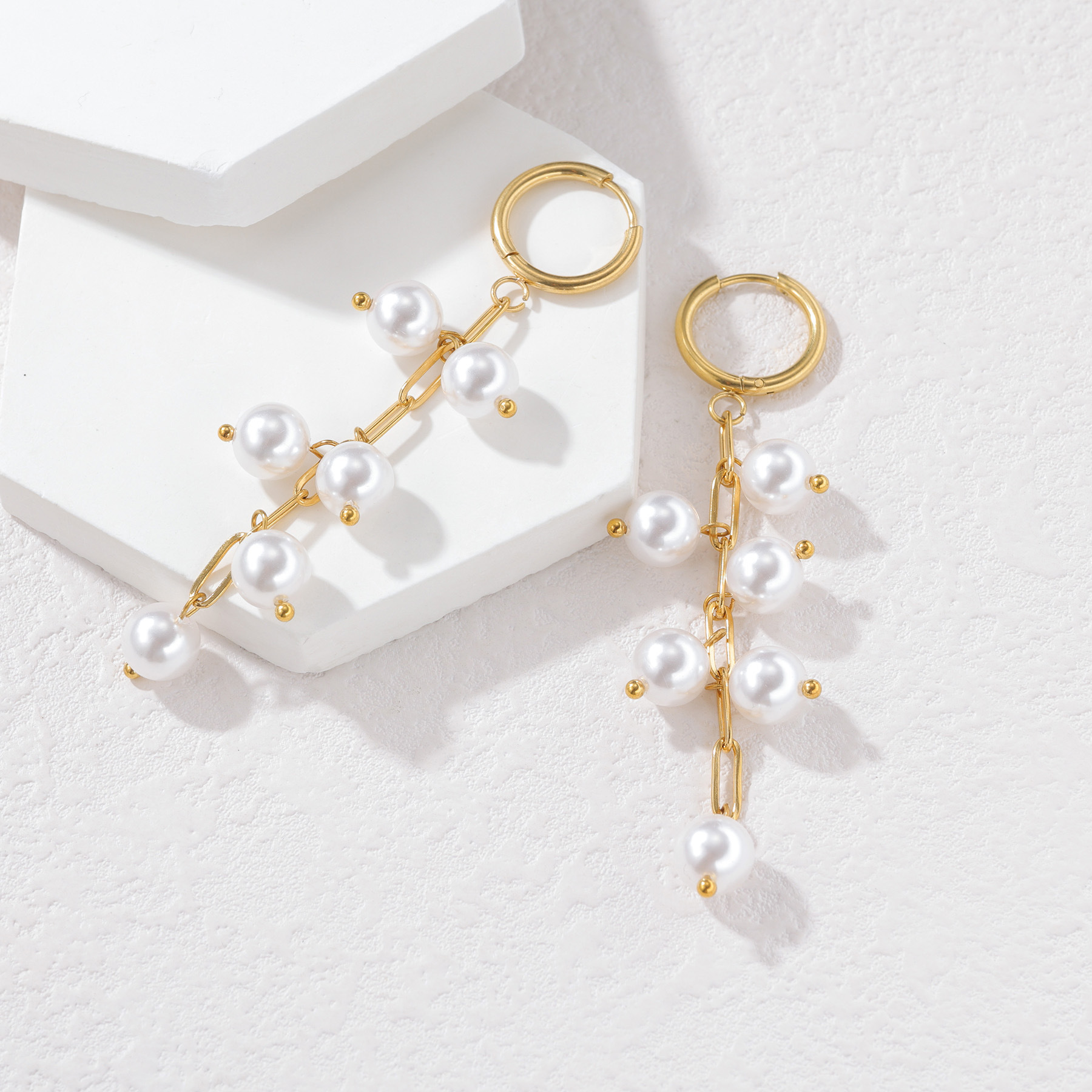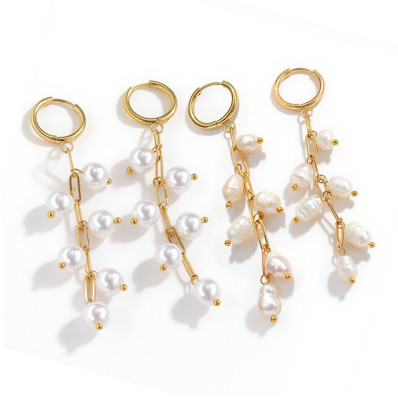 Boucle d'oreille goutte inox, Acier inoxydable 304, avec perle de plastique, Placage, styles différents pour le choix & pour femme & creux, doré, Vendu par paire