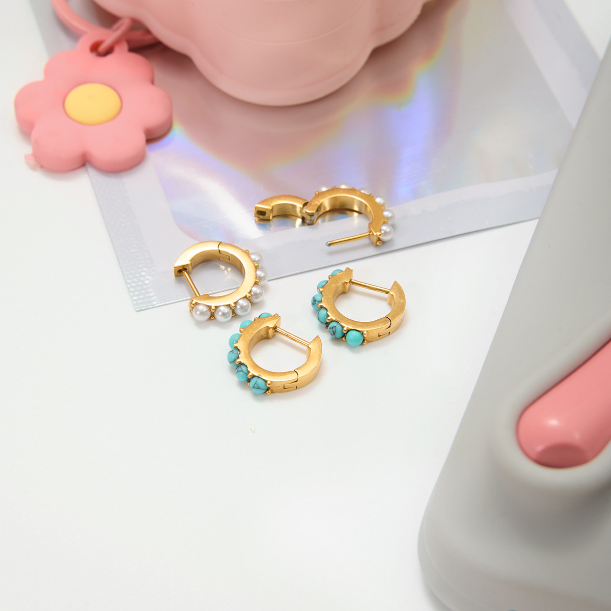 Boucle d'oreille goutte inox, Acier inoxydable 304, avec perle de verre, Placage de couleur d'or, bijoux de mode & différents matériaux pour le choix & pour femme, Vendu par paire