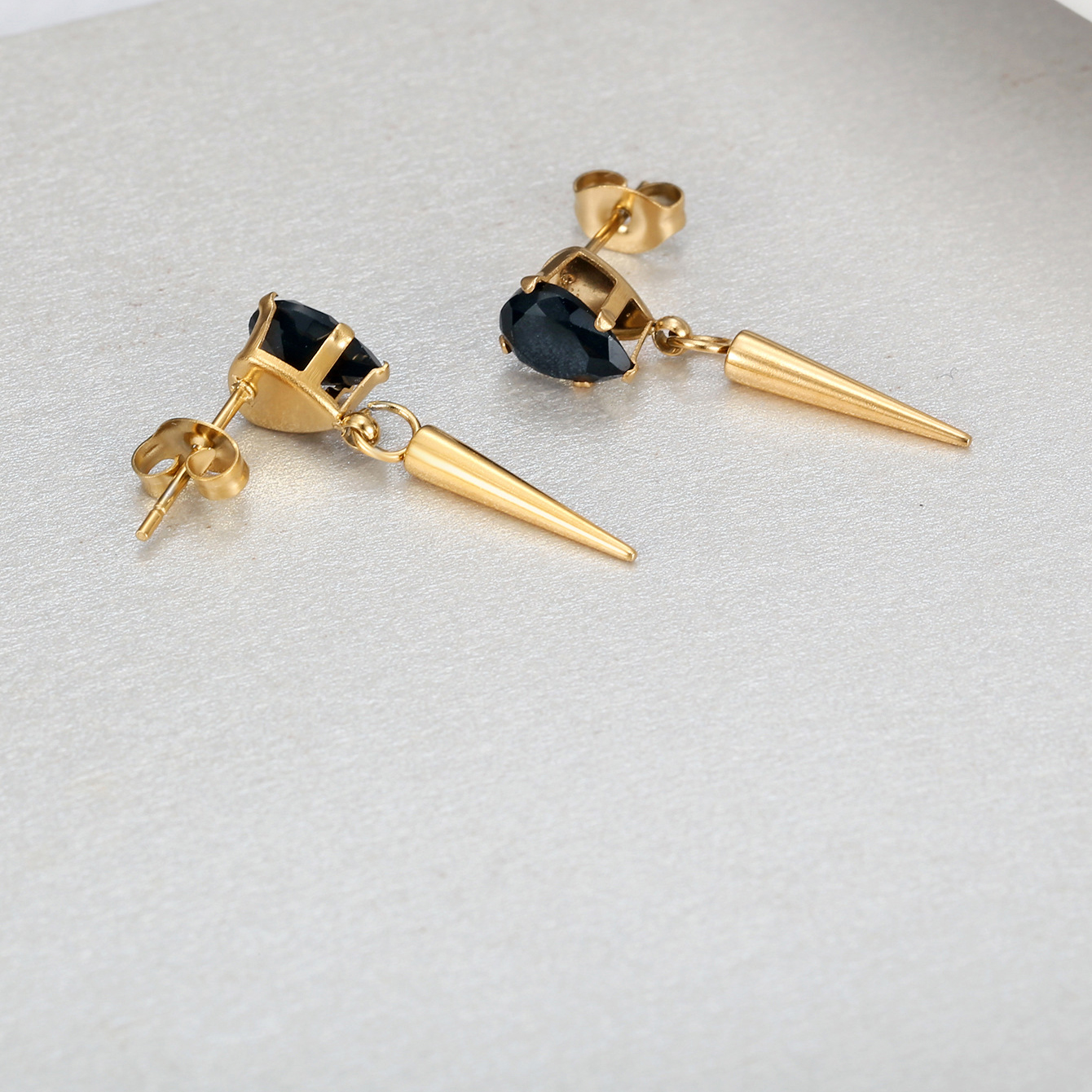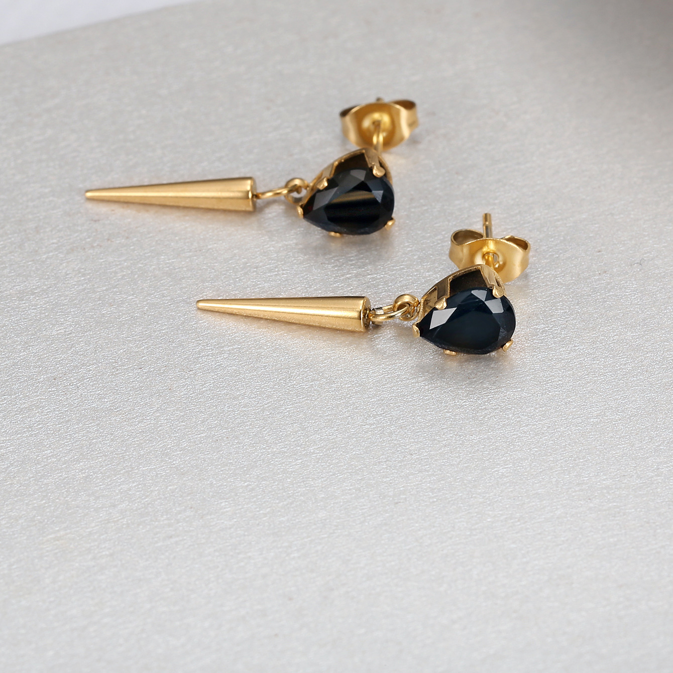 Boucle d'oreille goutte inox, Acier inoxydable 304, avec zircon cubique, Placage, bijoux de mode & pour femme, doré, Vendu par paire