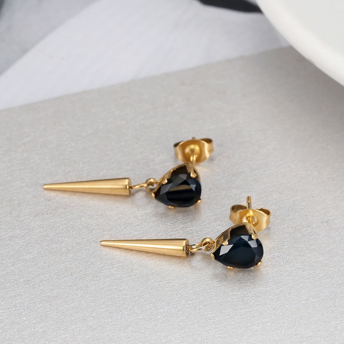 Boucle d'oreille goutte inox, acier inoxydable, avec strass, couleur originale  0.8mm, Vendu par paire