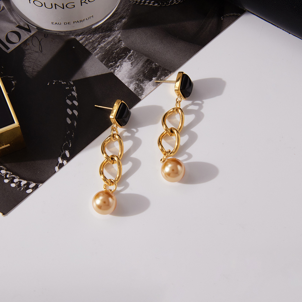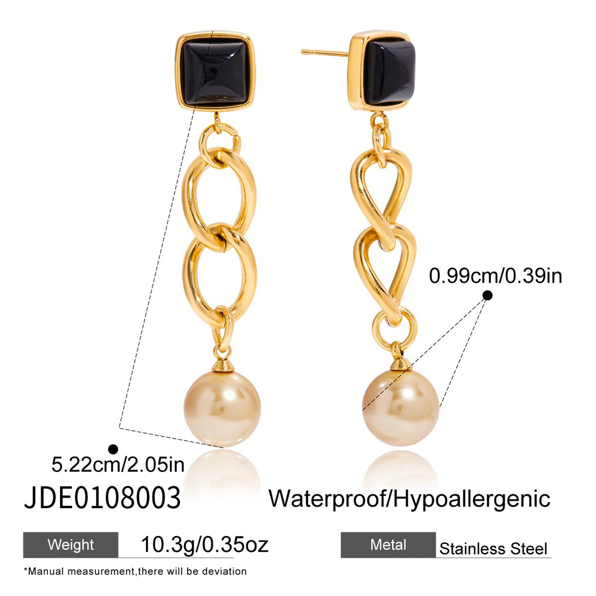 Boucle d'oreille goutte inox, Acier inoxydable 304, avec perle de verre & résine, Plaqué or 18K, bijoux de mode & pour femme & creux, Vendu par paire