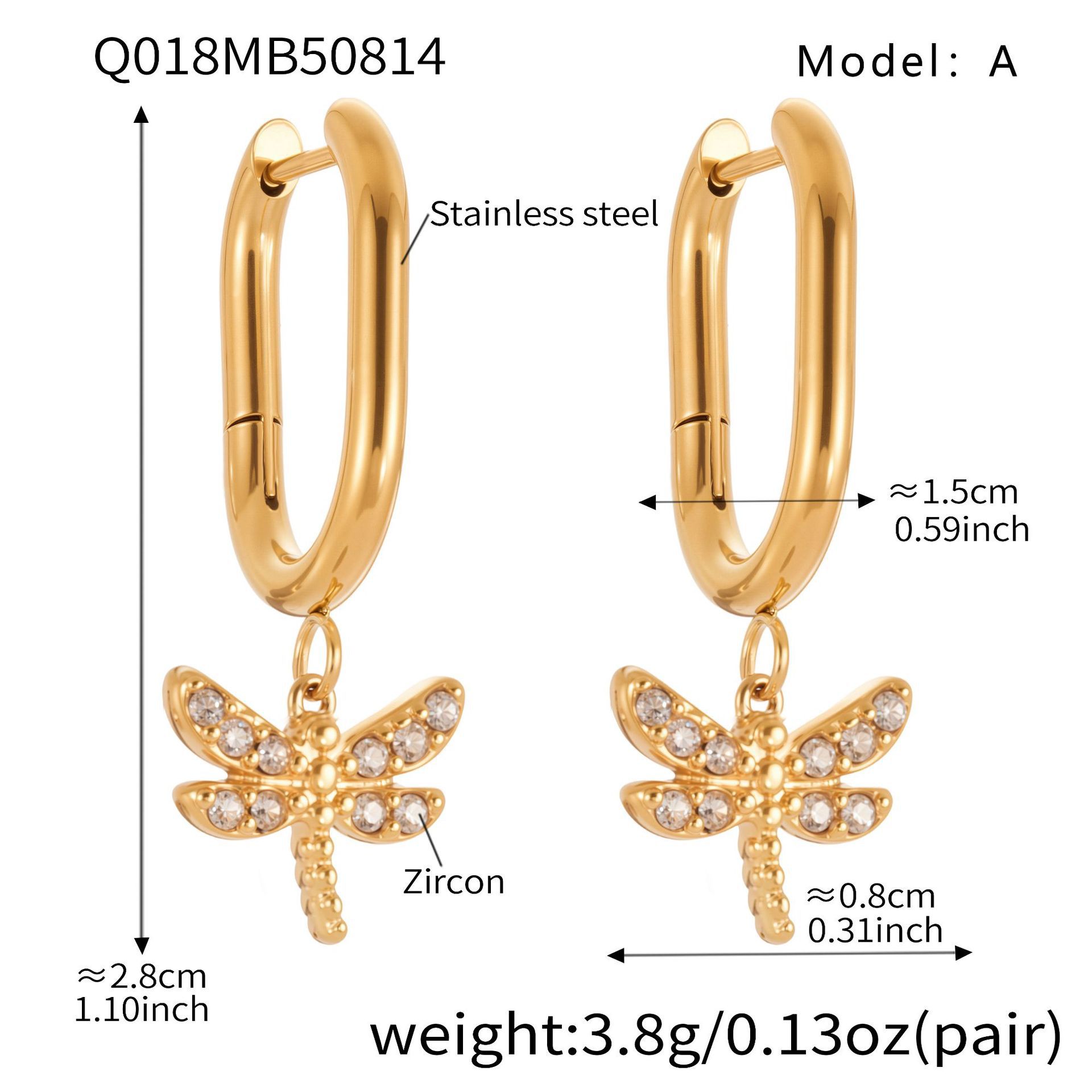Boucle d'oreille goutte inox, acier inoxydable, avec strass, couleur originale  0.8mm, Vendu par paire