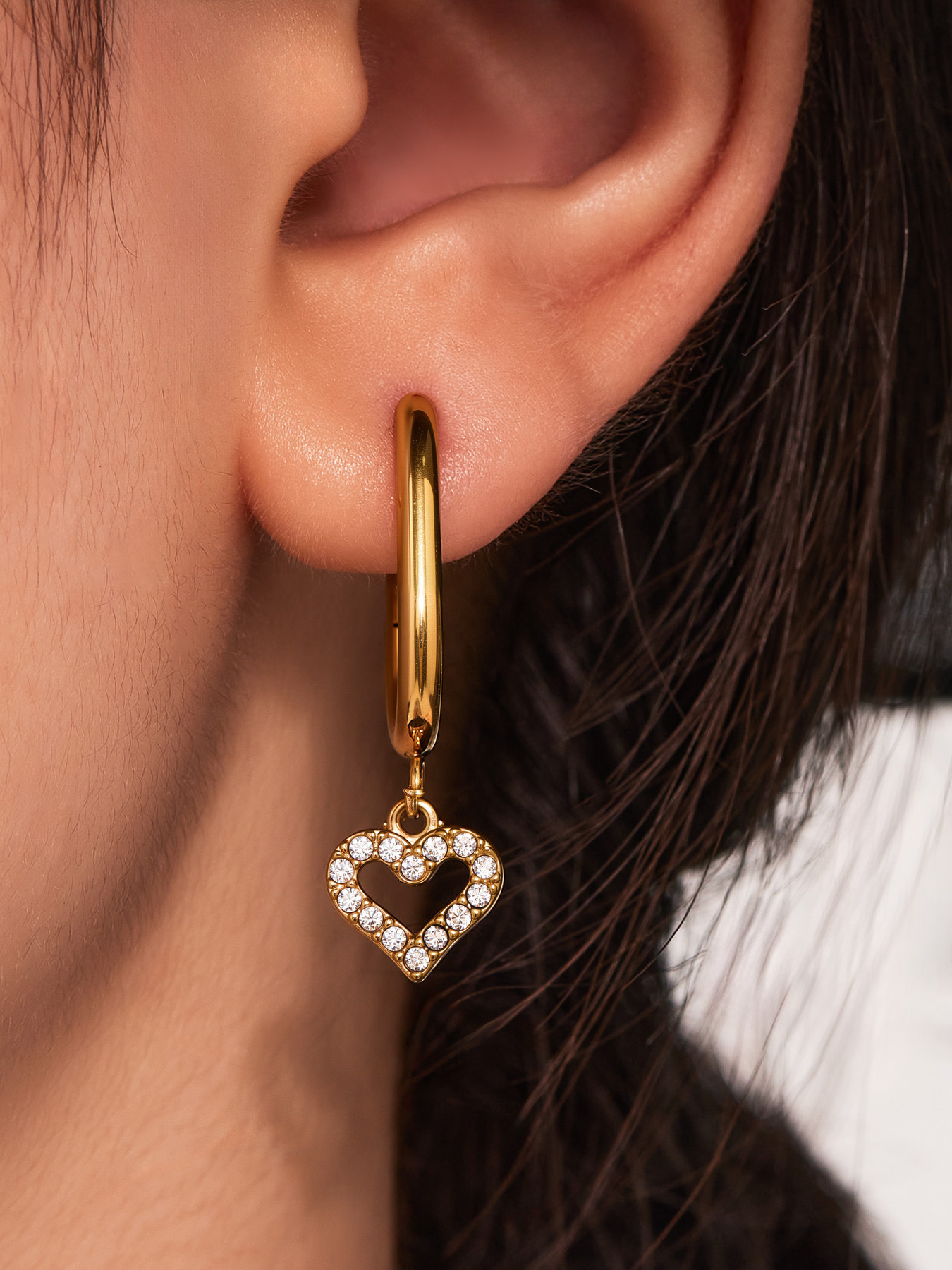 Boucle d'oreille goutte inox, acier inoxydable, avec strass, couleur originale  0.8mm, Vendu par paire