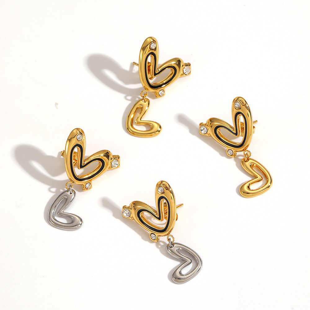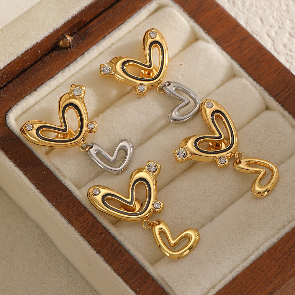 Boucle d'oreille goutte inox, Acier inoxydable 304, coeur, Placage, bijoux de mode & émail & avec strass, plus de couleurs à choisir, Vendu par paire