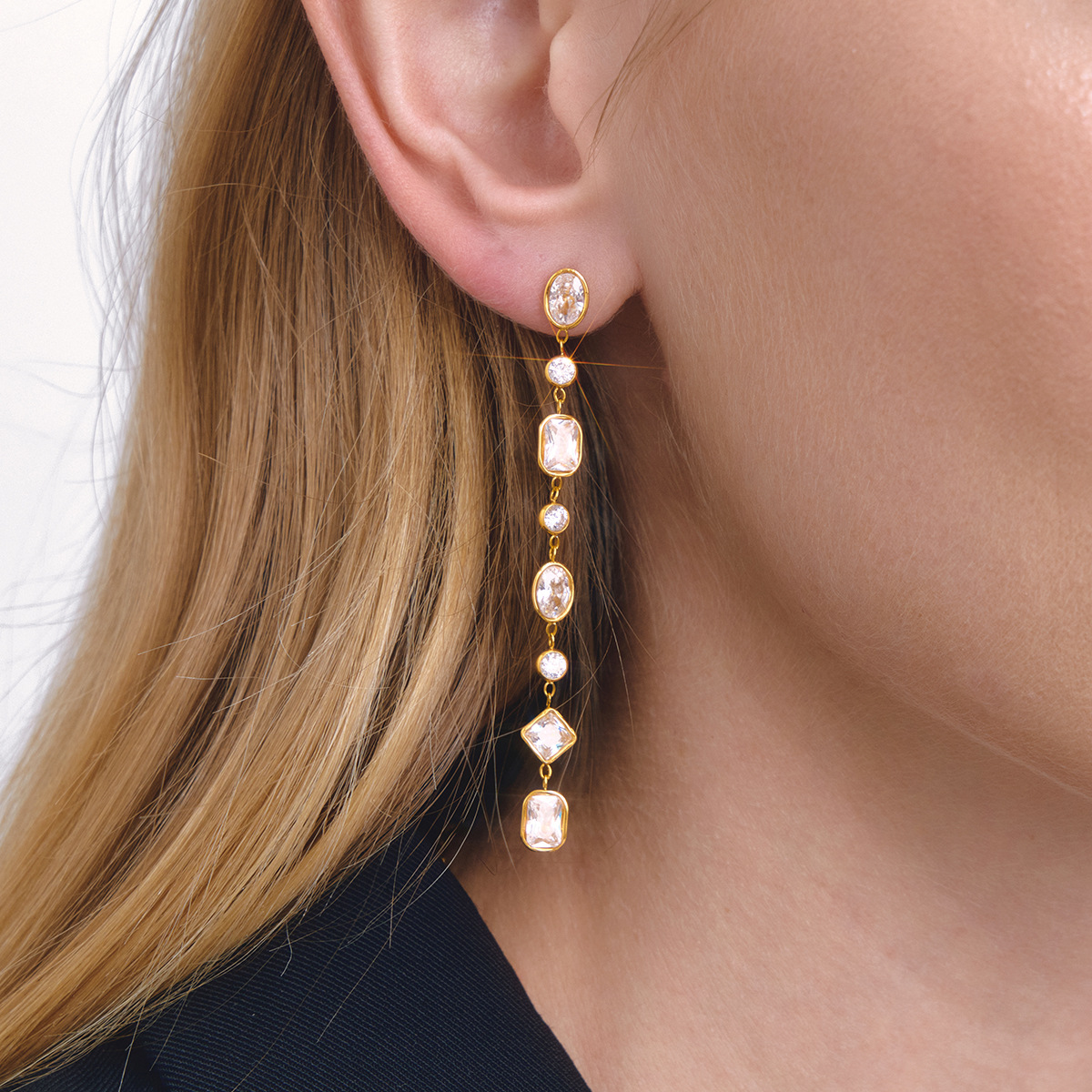 Boucle d'oreille goutte inox, acier inoxydable, avec zircon cubique, Plaqué or 18K, bijoux de mode & pour femme, plus de couleurs à choisir, 5.1x69.4mm, Vendu par paire