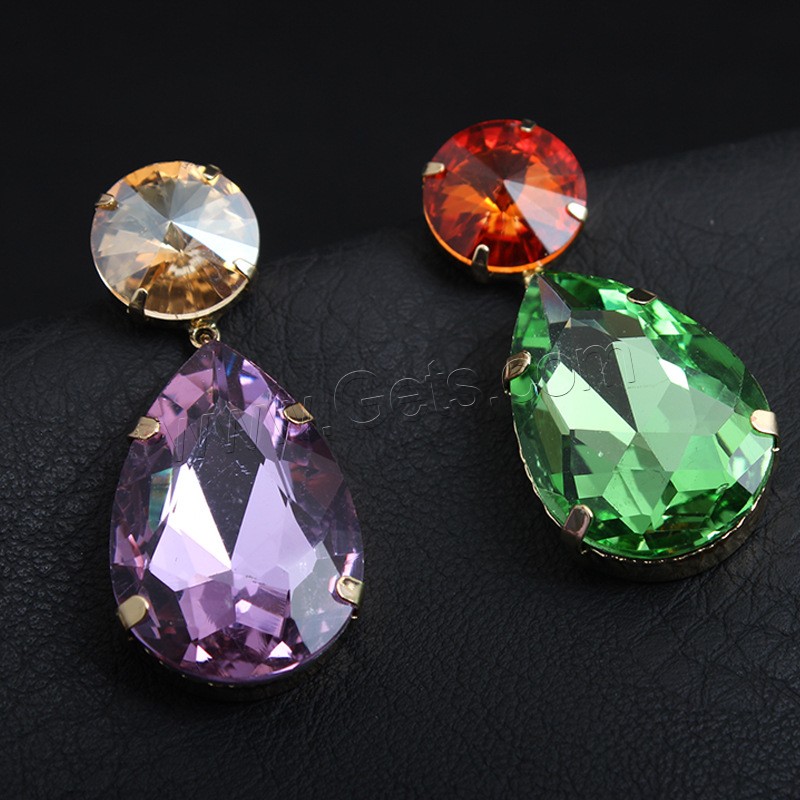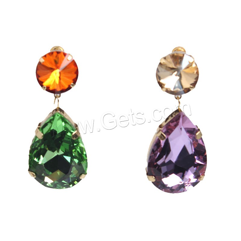 Boucle d'oreille de goutte en cristal, alliage de zinc, avec cristal, Placage de couleur d'or, sans embout de boucle d'oreille & avec strass, protéger l'environnement, sans nickel, plomb et cadmium Vendu par lot