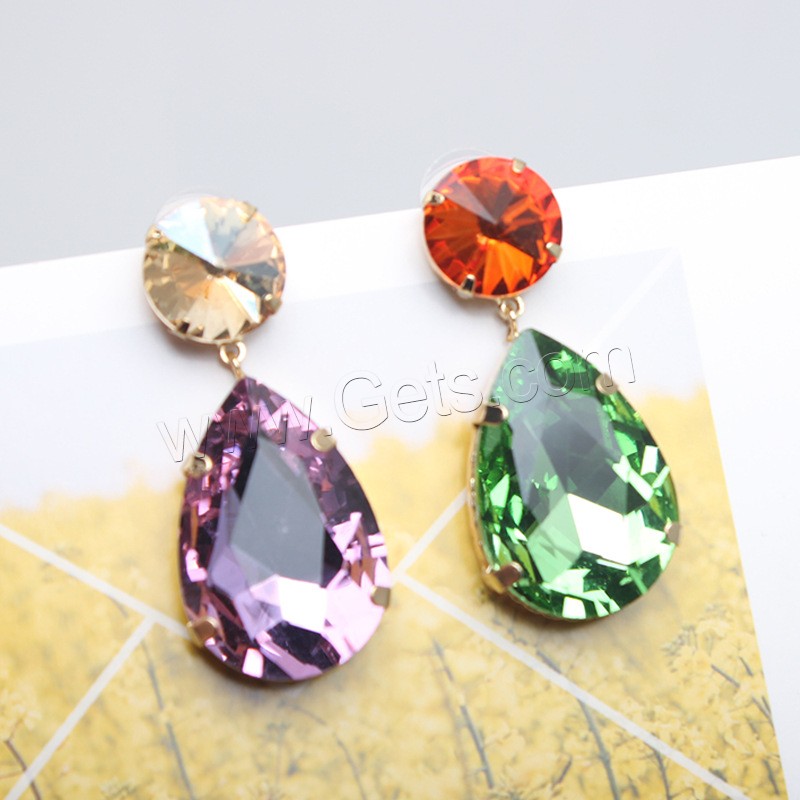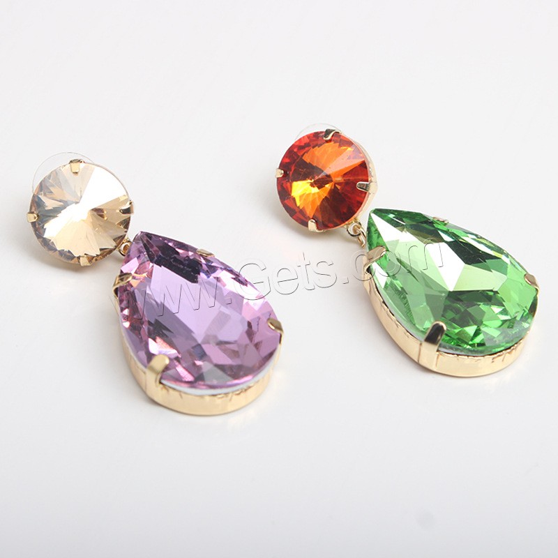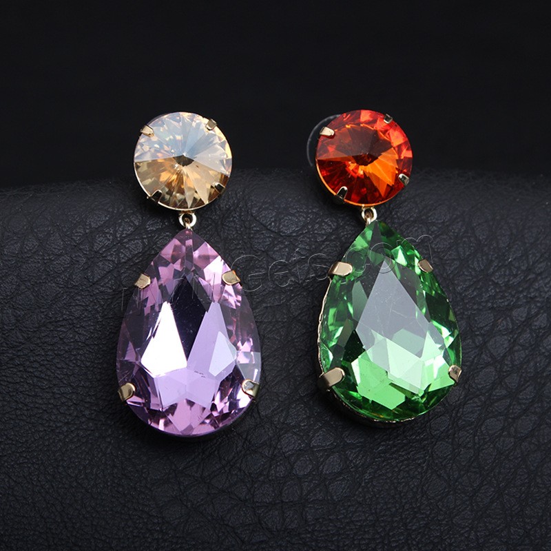 Boucle d'oreille de goutte en cristal, avec laiton, larme, Placage de couleur d'or, bijoux de mode & pour femme & facettes, multicolore, 20x48mm, Vendu par paire