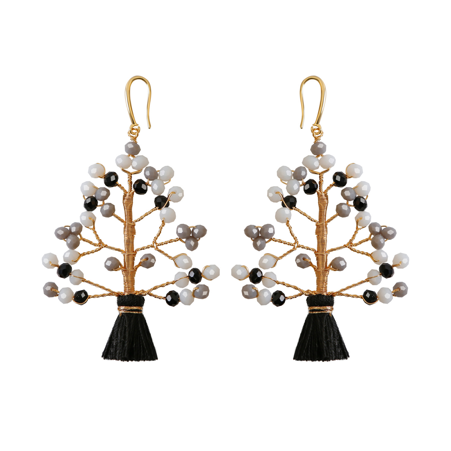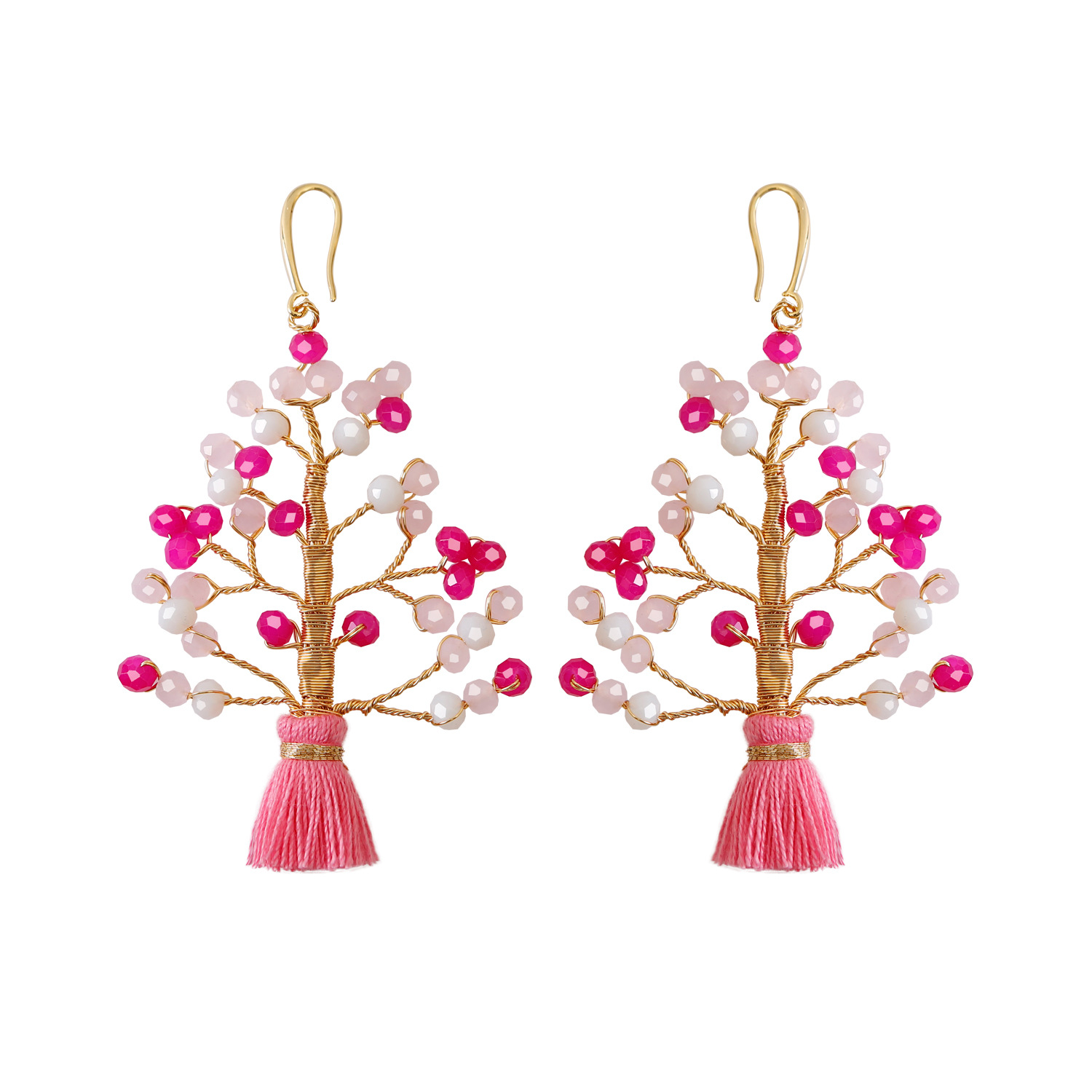 Boucle d'oreille de goutte en cristal, laiton, avec Fil de coton & Cristal naturel, bijoux de mode & pour femme, plus de couleurs à choisir, 78x48mm, Vendu par paire