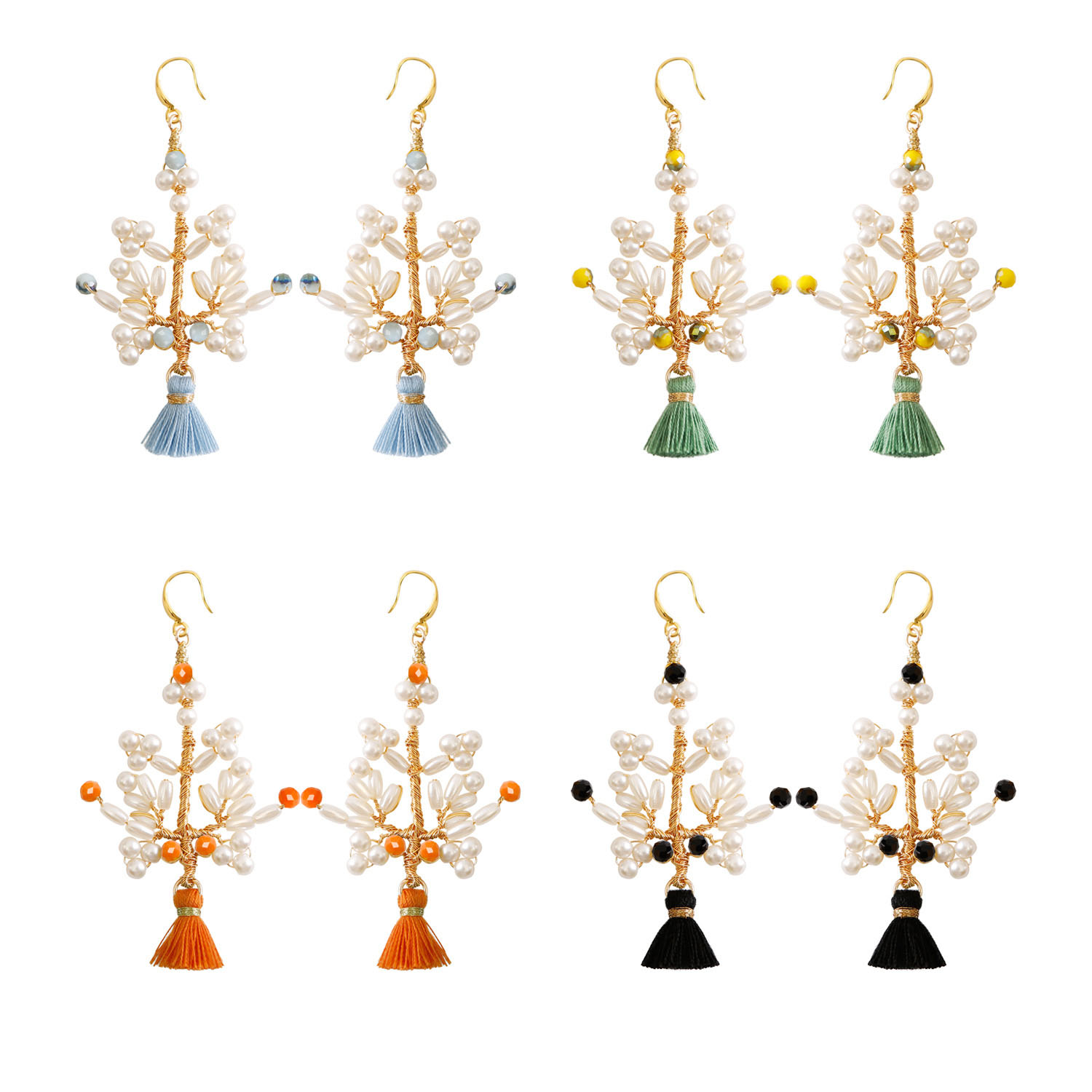 Boucle d'oreille de goutte en cristal, laiton, avec Fils de polyester & cristal & perle de plastique, fait à la main, bijoux de mode & pour femme, plus de couleurs à choisir, 50x85mm, Vendu par paire