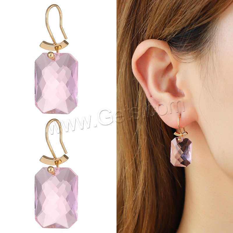 Boucle d'oreille de goutte en cristal, alliage de zinc, avec cristal & résine, acier inoxydable puce boucle d'oreille, Placage de couleur d'or, facettes, sans plomb et cadmium Vendu par paire