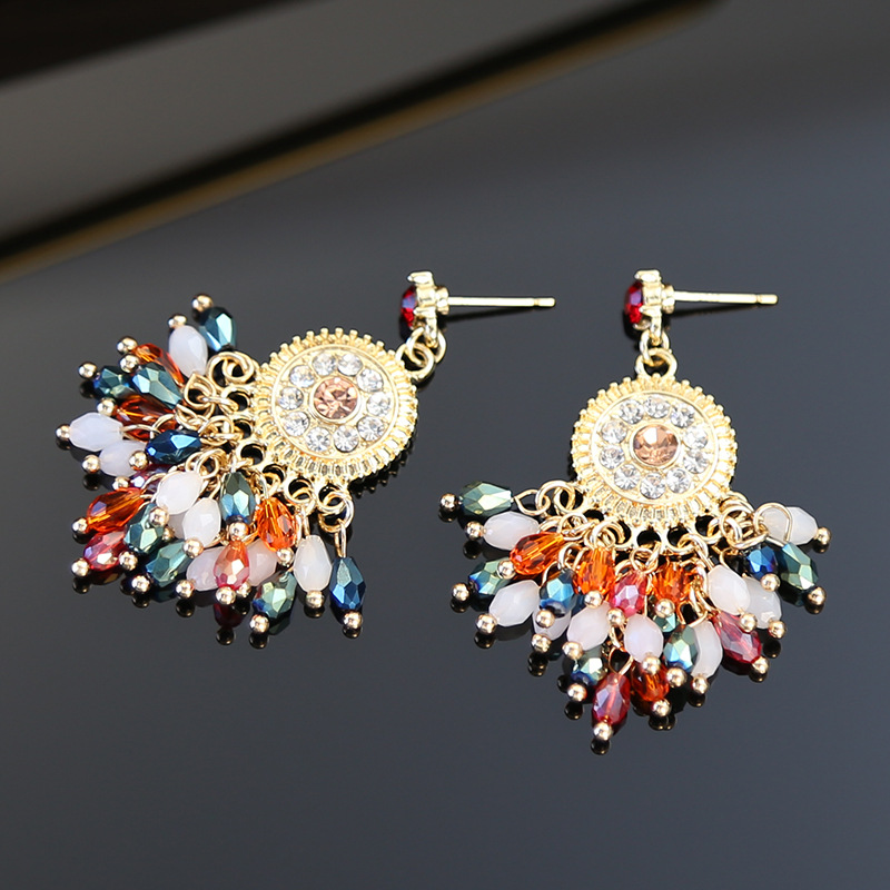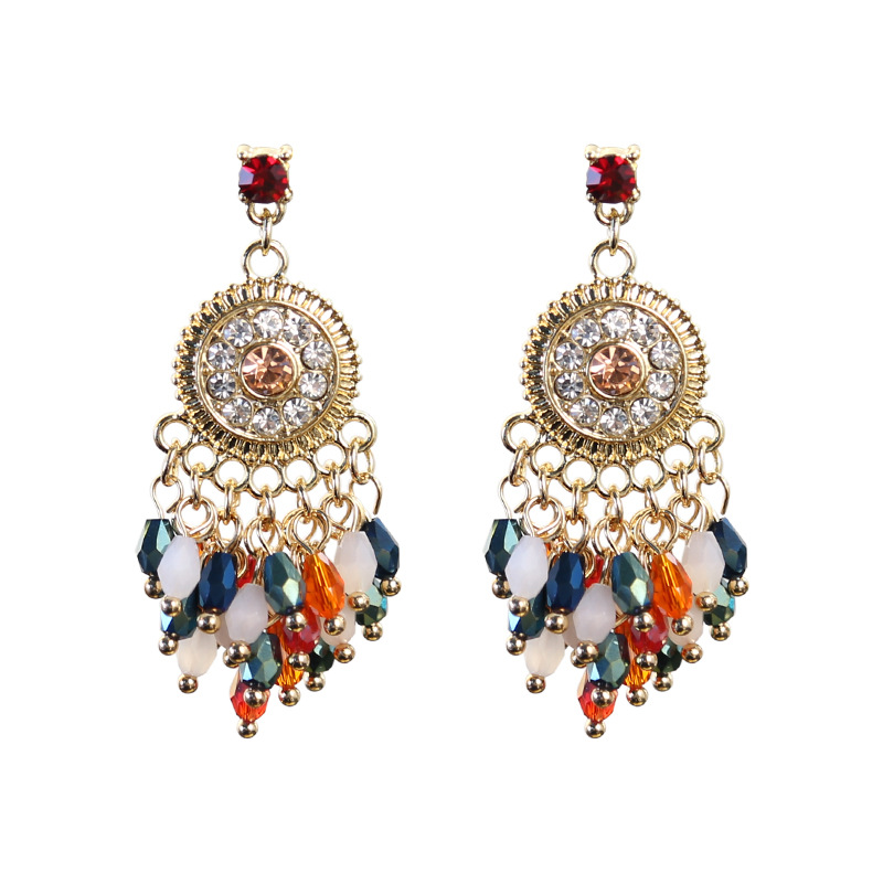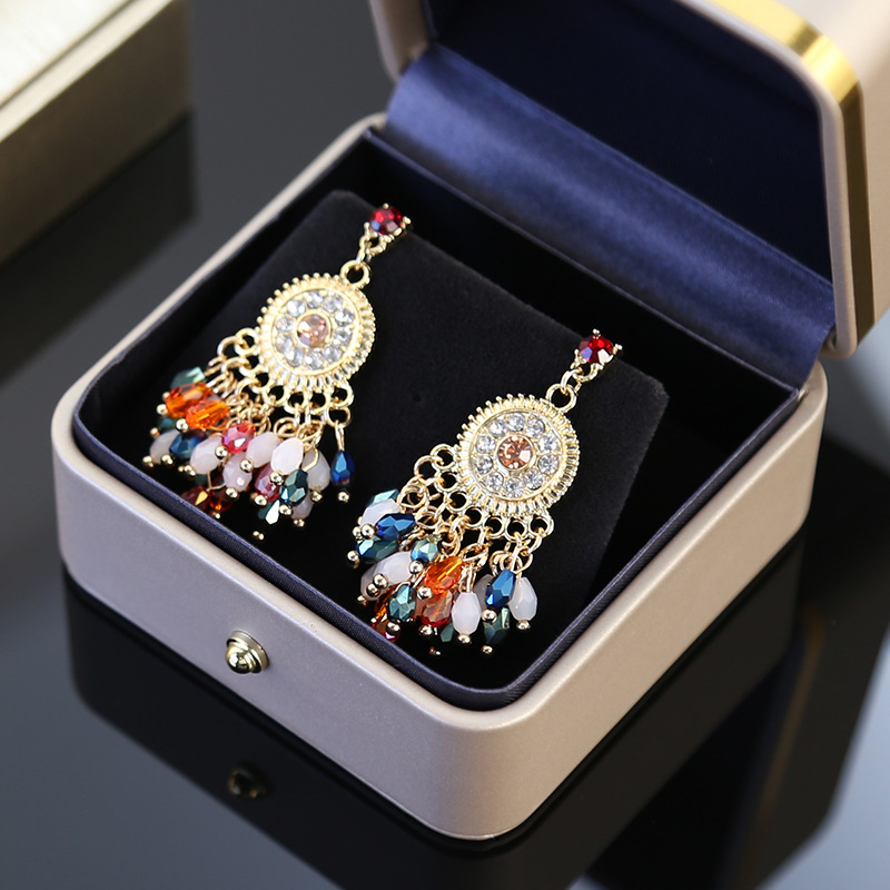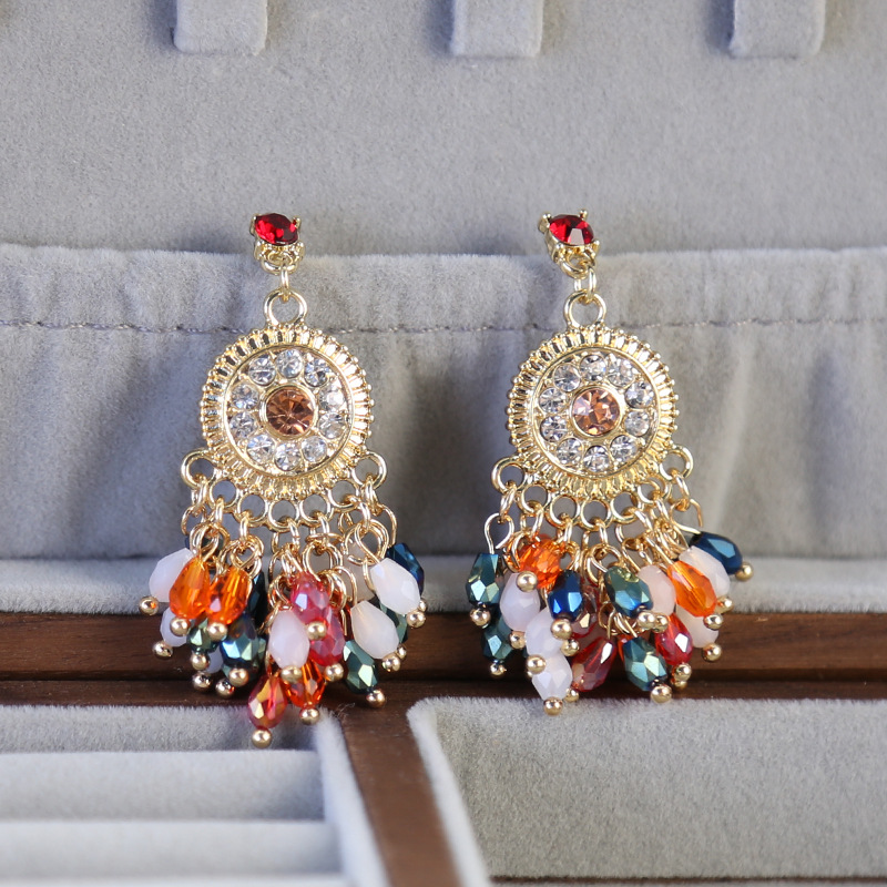 Boucle d'oreille de goutte en cristal, alliage de zinc, avec cristal, Placage de couleur d'or, sans embout de boucle d'oreille & avec strass, protéger l'environnement, sans nickel, plomb et cadmium Vendu par lot