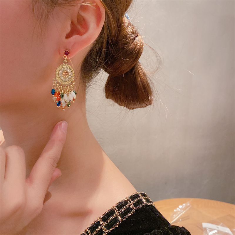 Boucle d'oreille de goutte en cristal, alliage de zinc, avec cristal & résine, acier inoxydable puce boucle d'oreille, Placage de couleur d'or, facettes, sans plomb et cadmium Vendu par paire