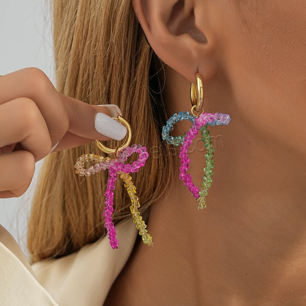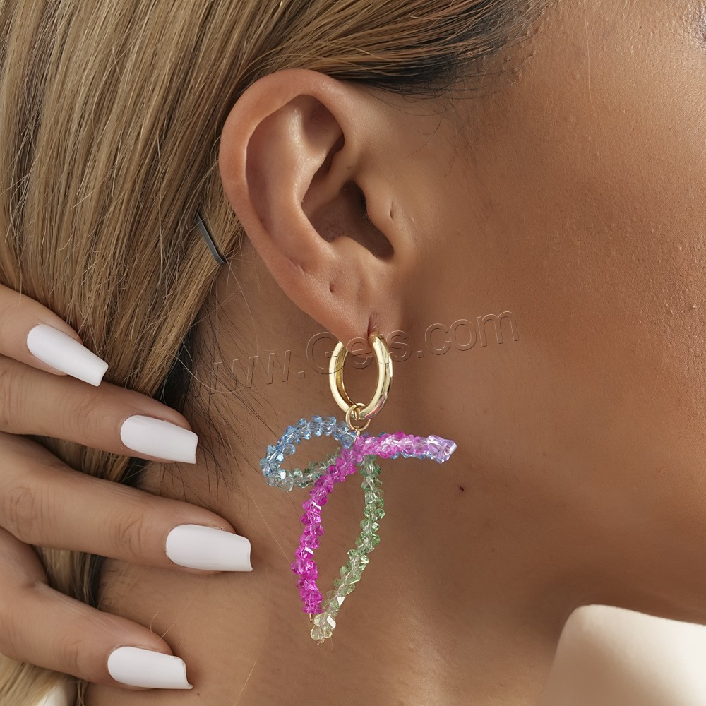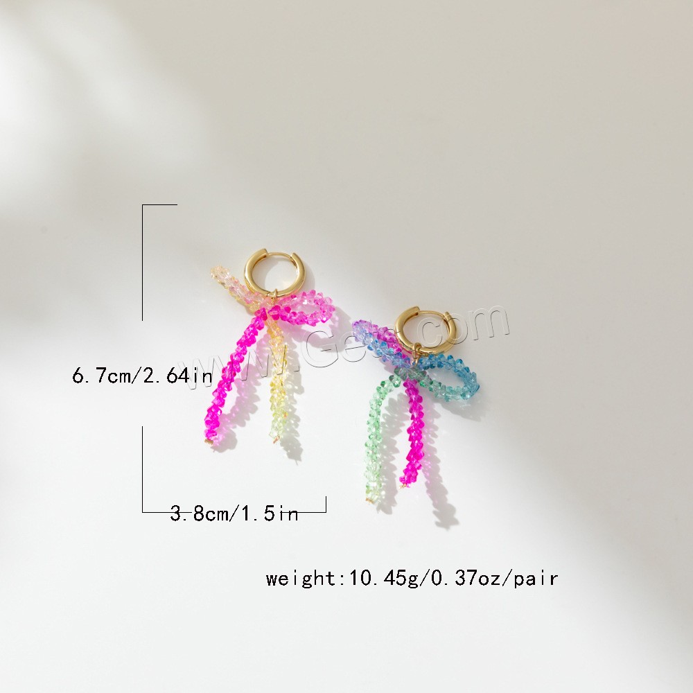 Boucle d'oreille de goutte en cristal, laiton, avec cristal, Noeud papillon, Placage, bijoux de mode, multicolore, 38x67mm, Vendu par paire