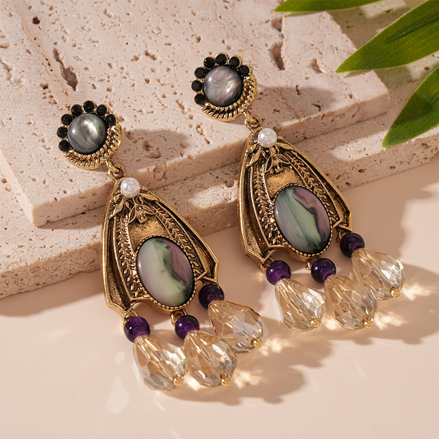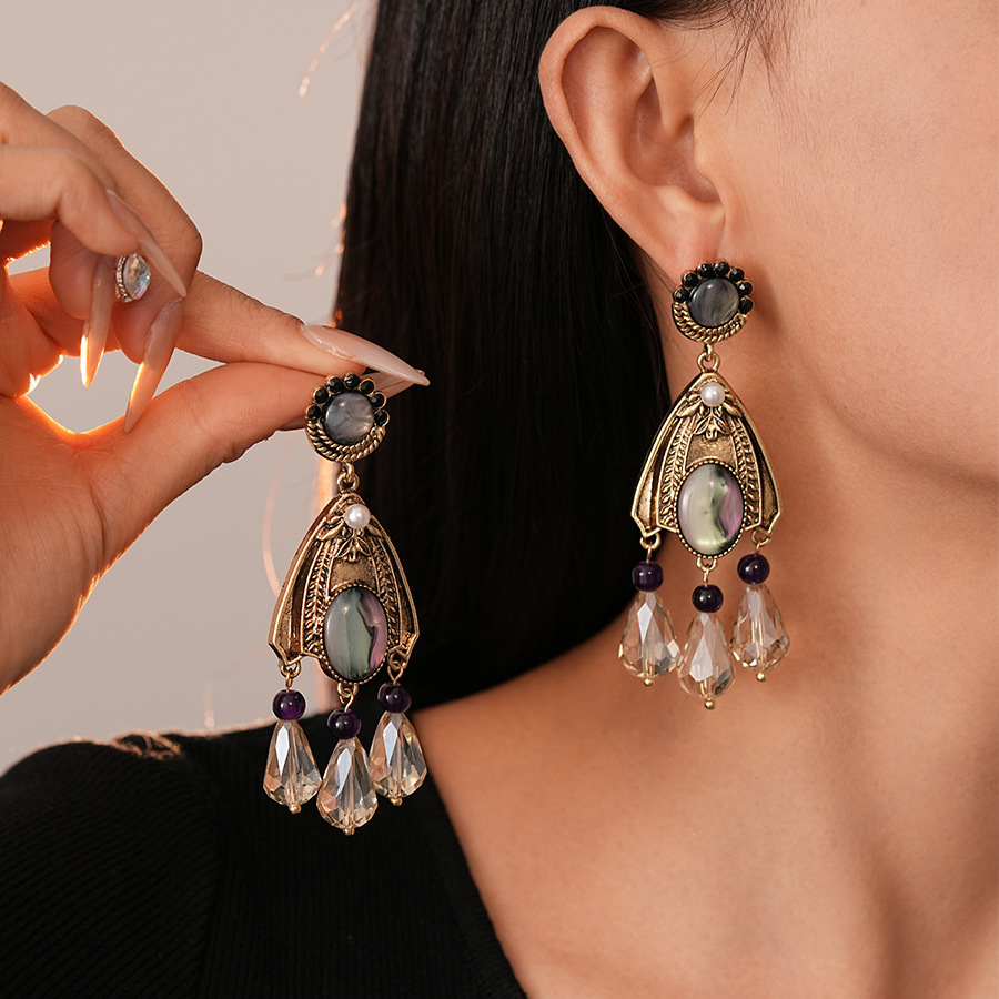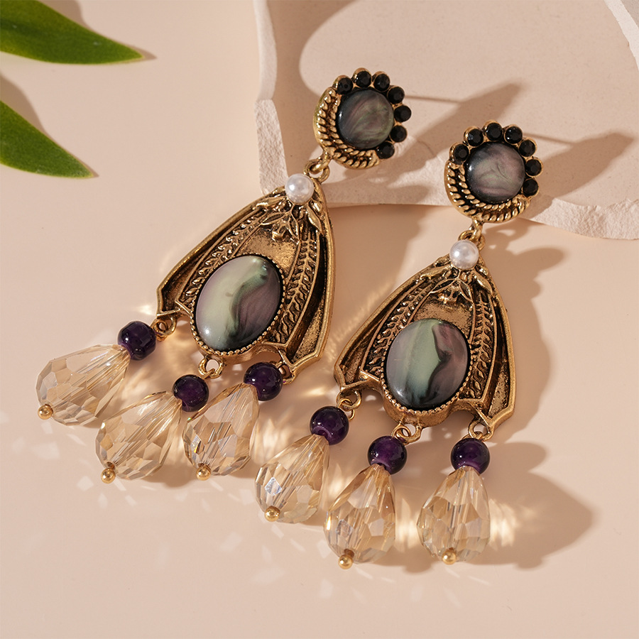Boucle d'oreille de goutte en cristal, alliage de zinc, avec cristal & perle de plastique, Placage, bijoux de mode & pour femme & avec strass, doré, 90x30mm, Vendu par paire