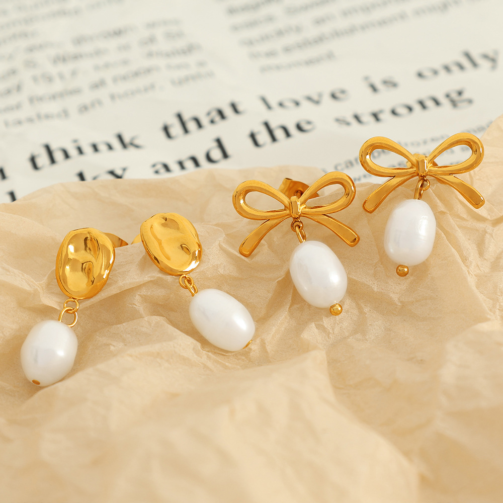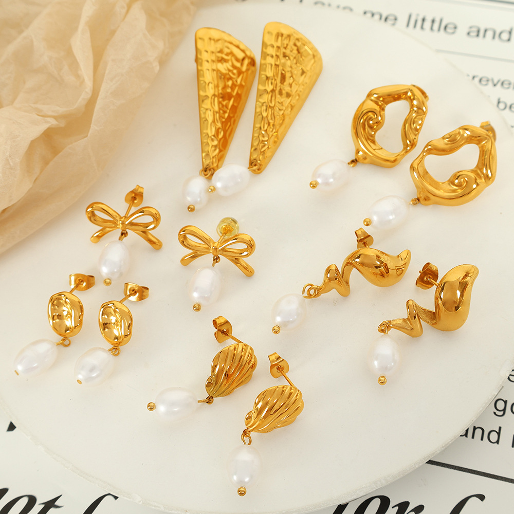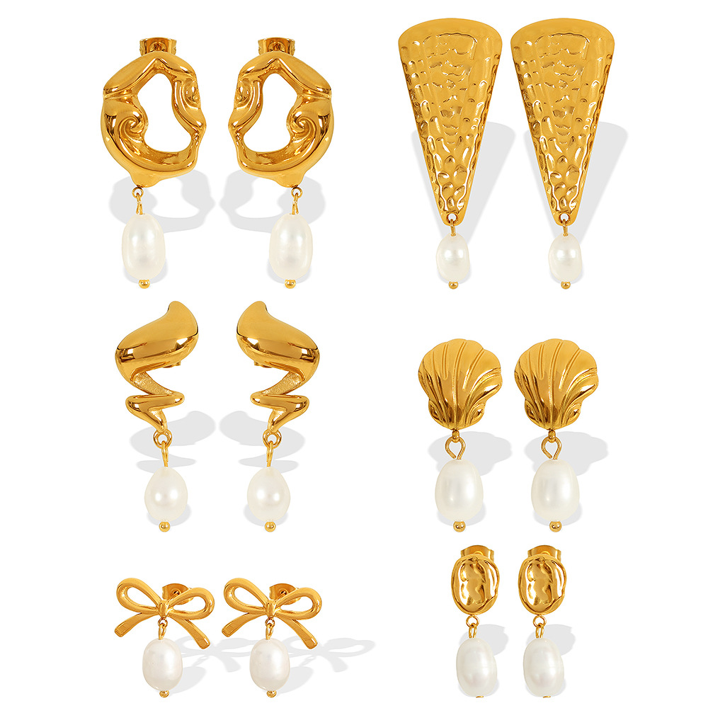 Boucle d'oreille de perle de goutte d'eau douce, Acier inoxydable 304, avec perle d'eau douce cultivée, Plaqué or 18K, bijoux de mode & styles différents pour le choix & pour femme, Vendu par paire