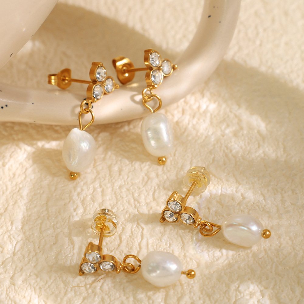 Boucle d'oreille de perle de goutte d'eau douce, Acier inoxydable 304, avec perle d'eau douce cultivée, Placage, bijoux de mode & pour femme, plus de couleurs à choisir, Vendu par paire