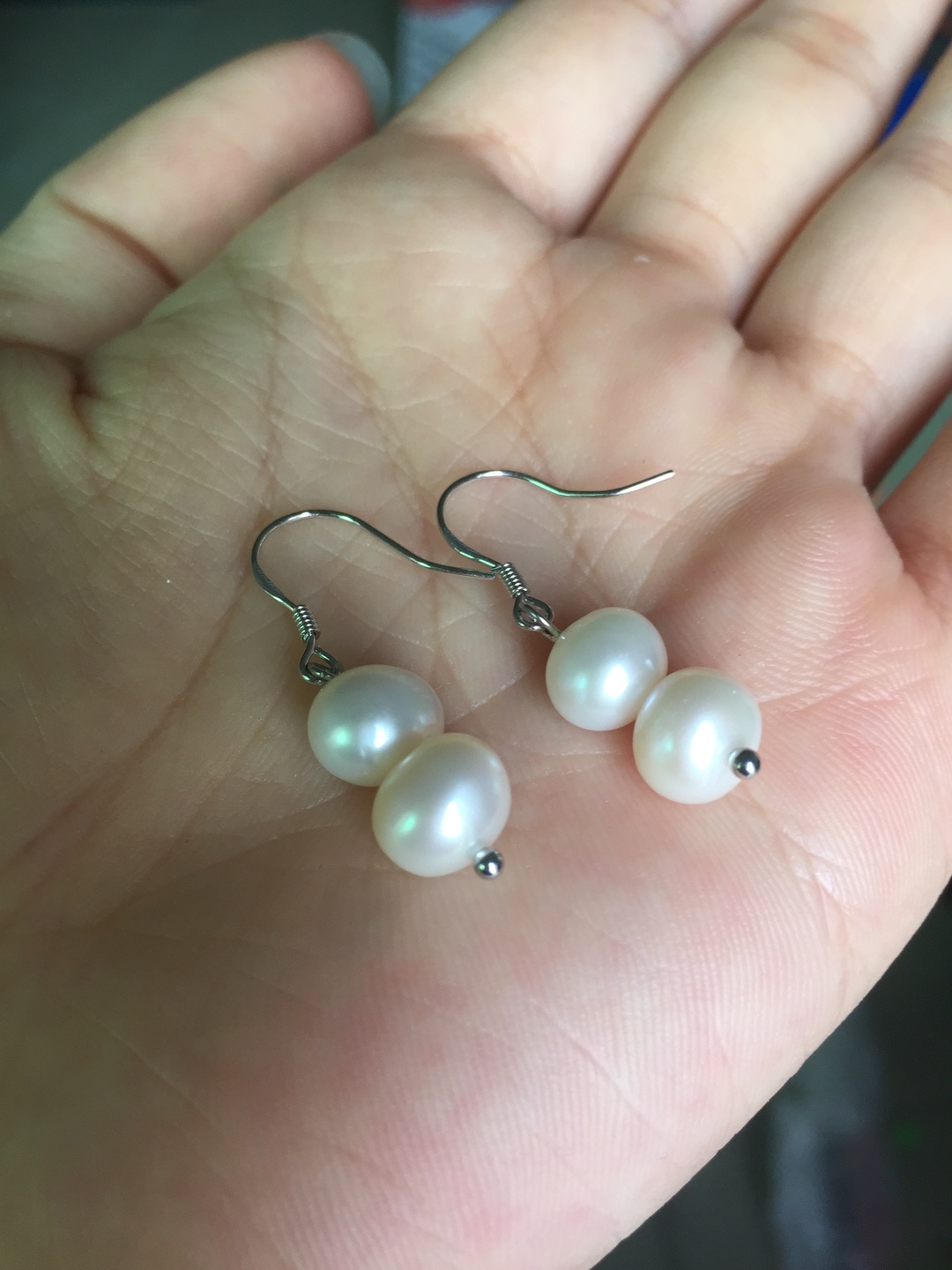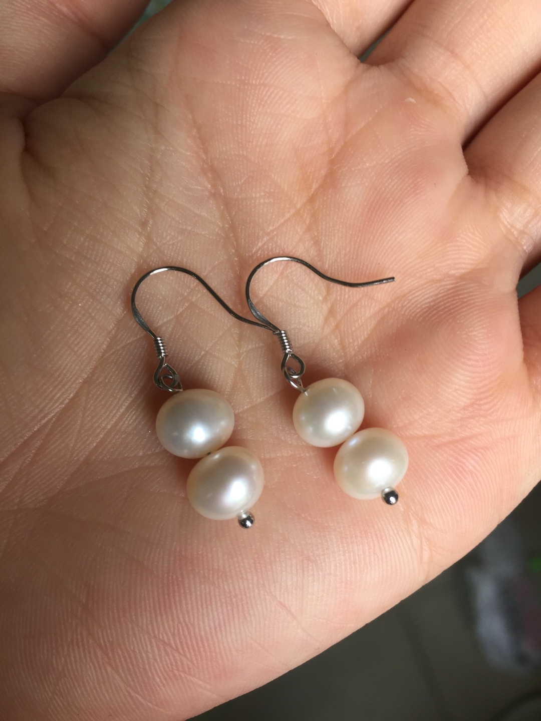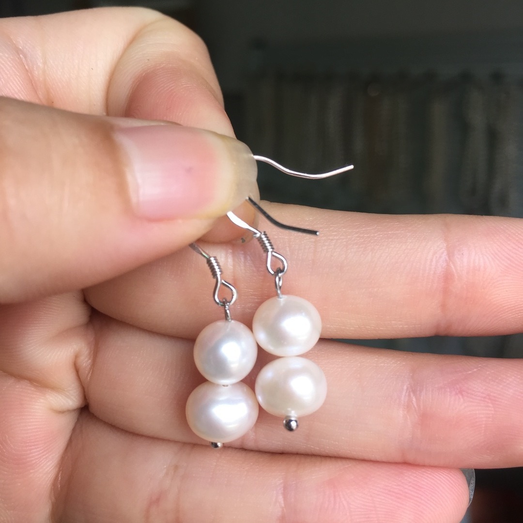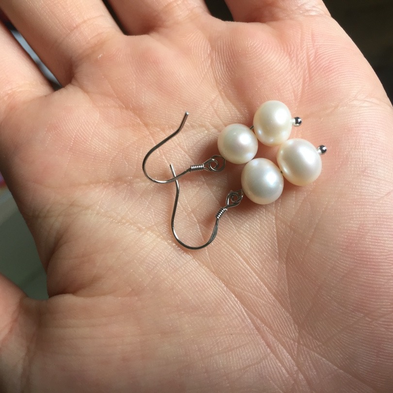 perle d'eau douce cultivée Boucle d'oreille goutte, avec argile de polymère, argent pur boucle d'oreille crochet, fleur 7-8mm 6-7mm .5 pouce, Vendu par paire