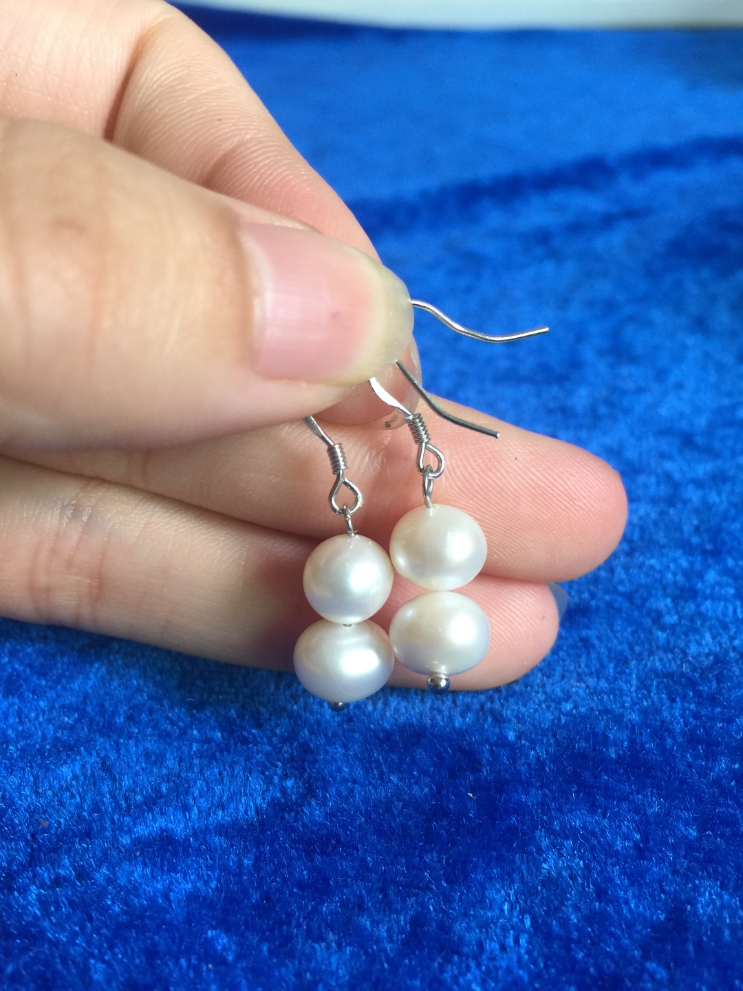 Boucle d'oreille de perle de goutte d'eau douce, perle d'eau douce cultivée, Légèrement rond, pour femme, blanc, About:7-8MM, Vendu par paire