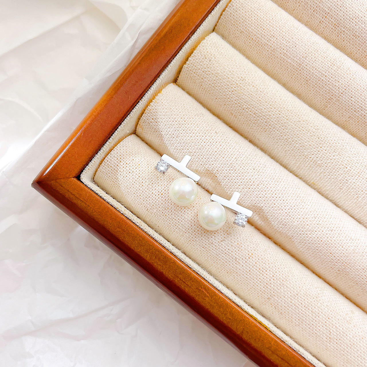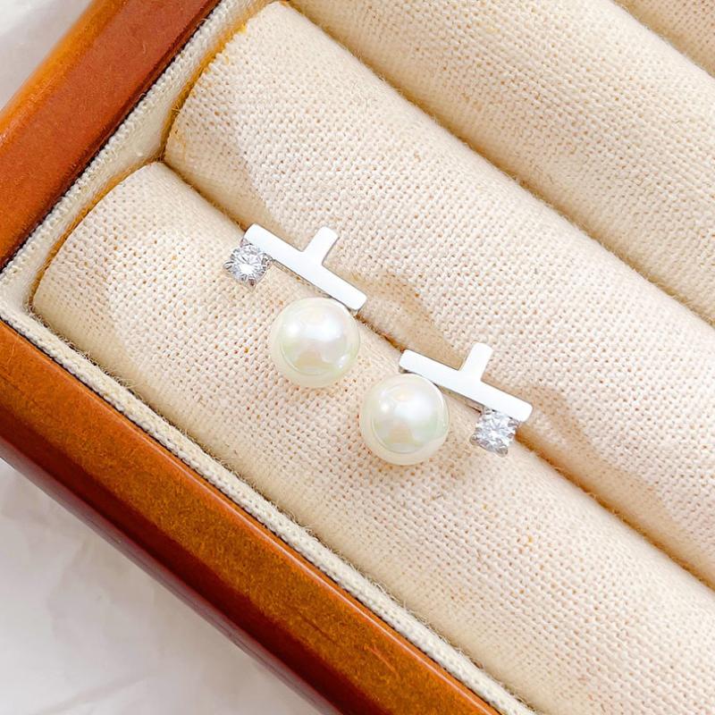 Boucle d'oreille de perles d'eau douce , Acier inoxydable 304, avec zircon cubique & perle d'eau douce cultivée, Placage ionique sous vide, pour femme, Vendu par paire