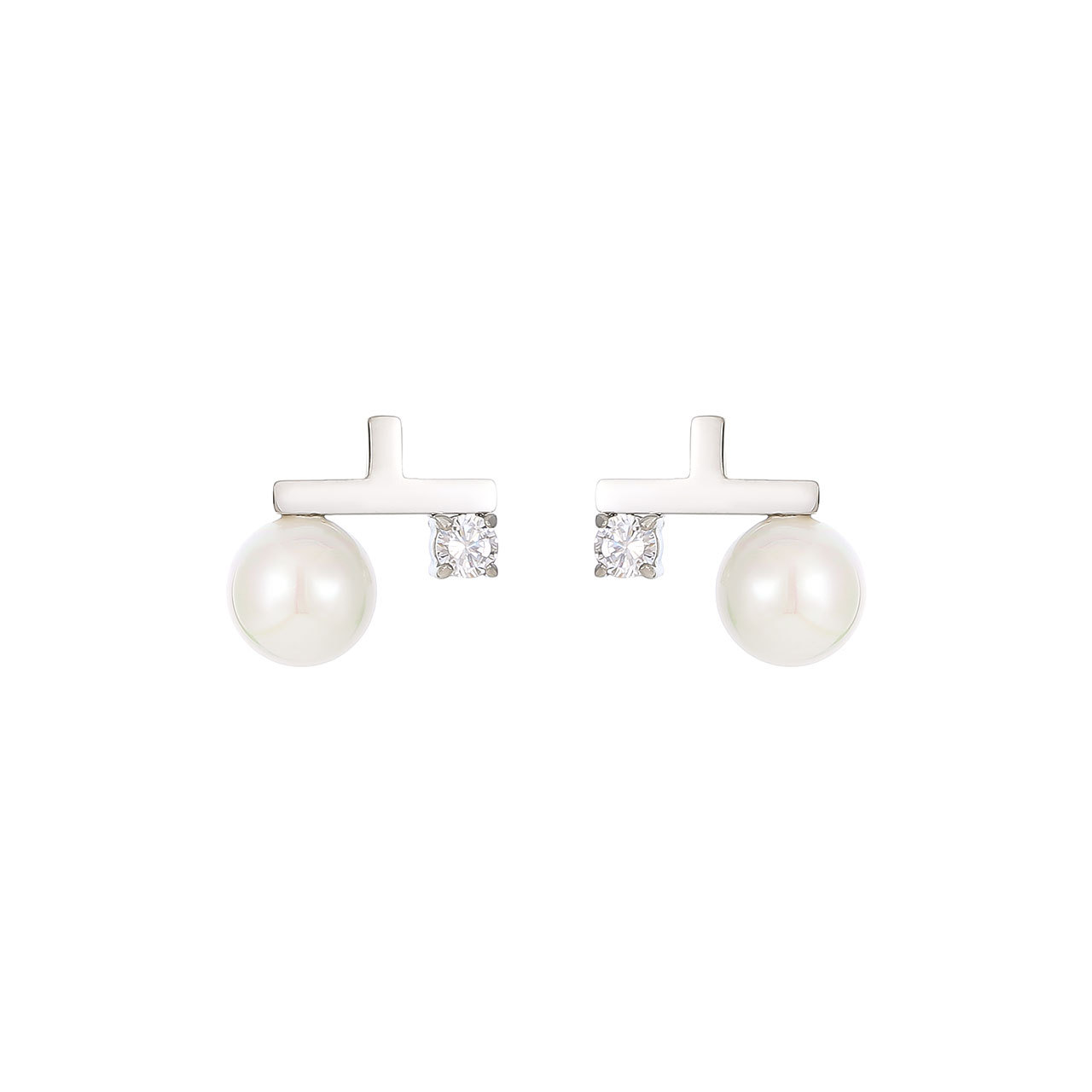 Boucle d'oreille de perles d'eau douce , perle d'eau douce cultivée, laiton puce boucle d'oreille, bouton, Placage de couleur argentée, naturel, blanc, 13-14mm, Vendu par paire