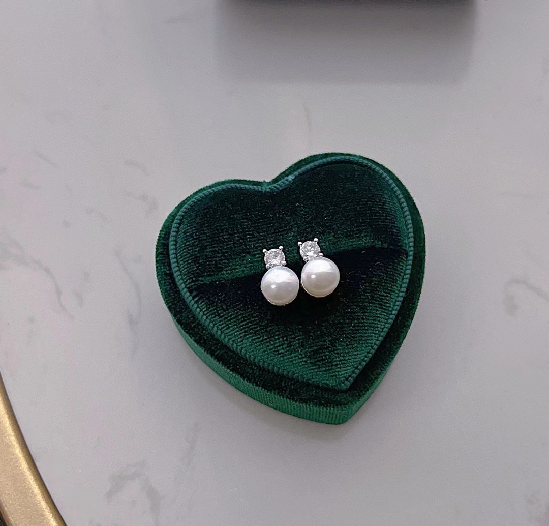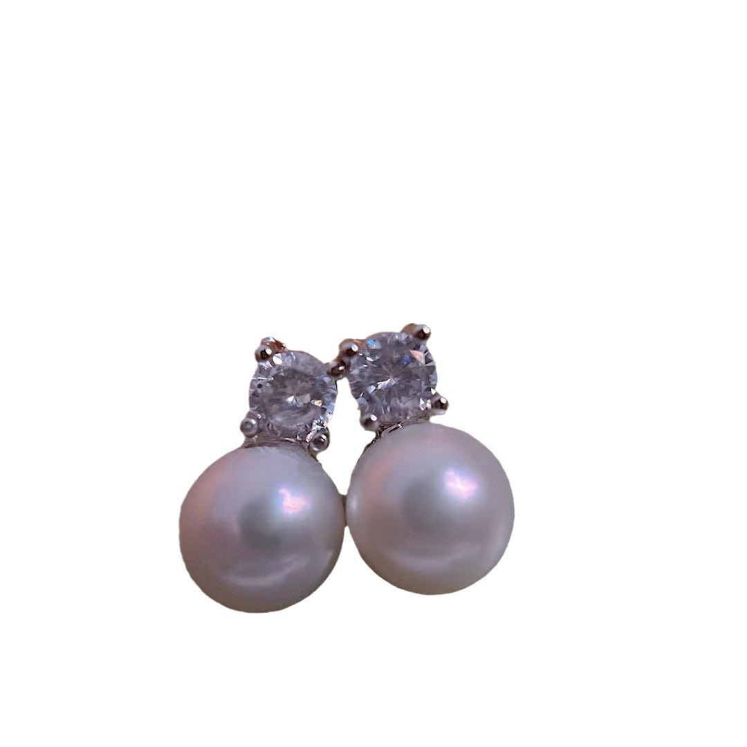 Boucle d'oreille de perles d'eau douce , perle d'eau douce cultivée, avec alliage de zinc, Rond, Placage, bijoux de mode & pavé de micro zircon, blanc, 7x8mm, Vendu par paire