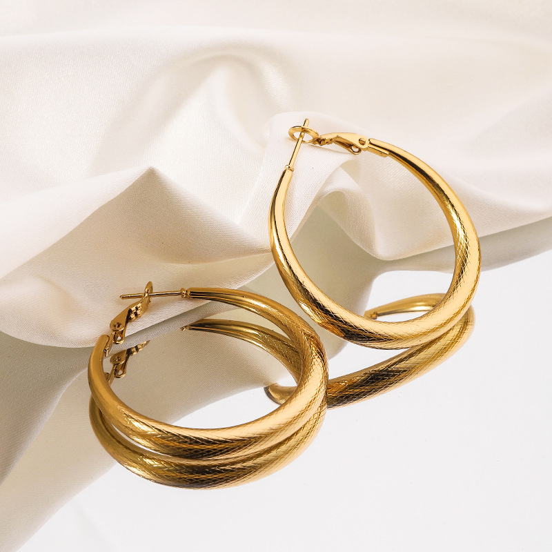 Boucle d'oreille en acier inoxydable Dangle, Acier inoxydable 304, Plaqué or 18K, bijoux de mode & pour femme, doré, 40x45mm, Vendu par paire
