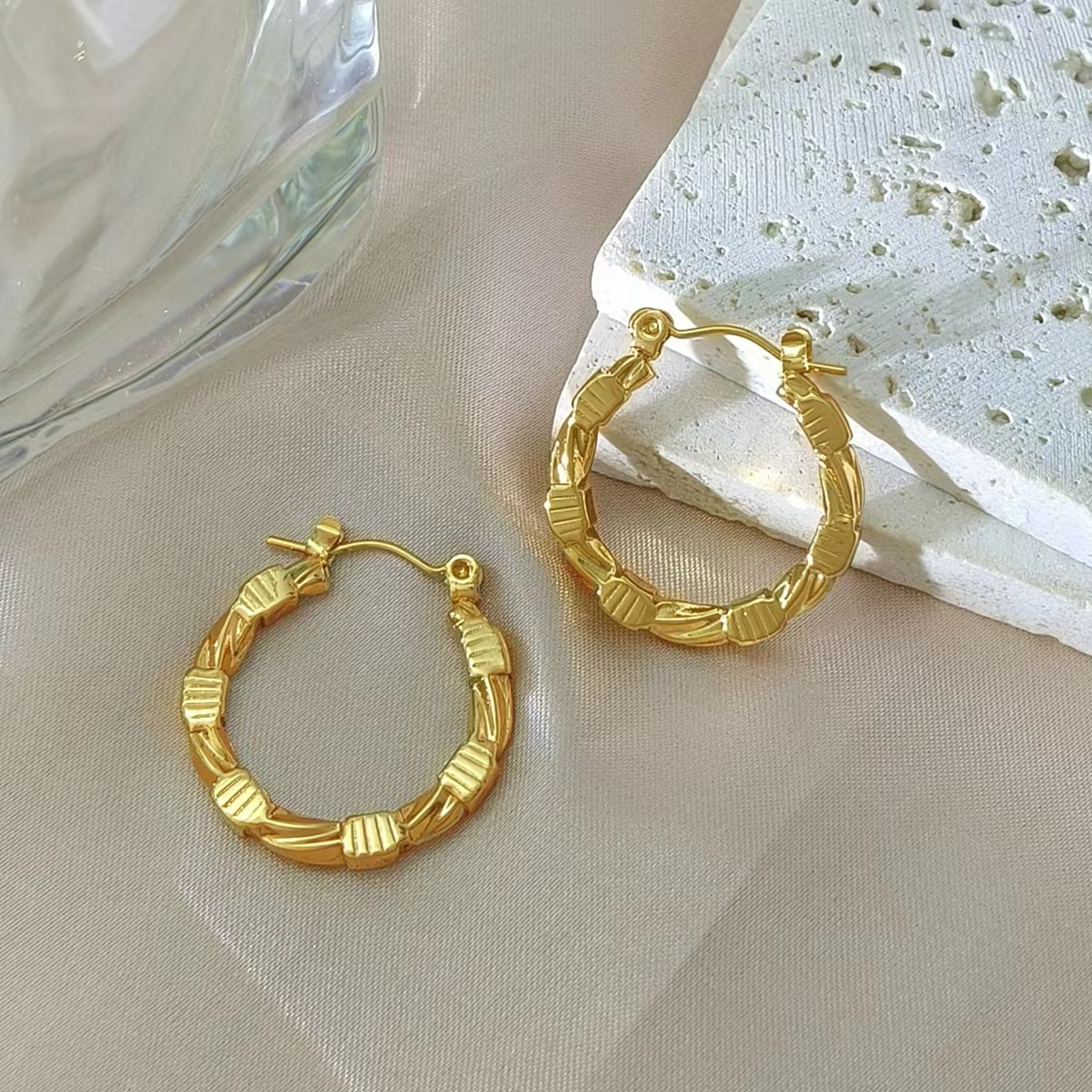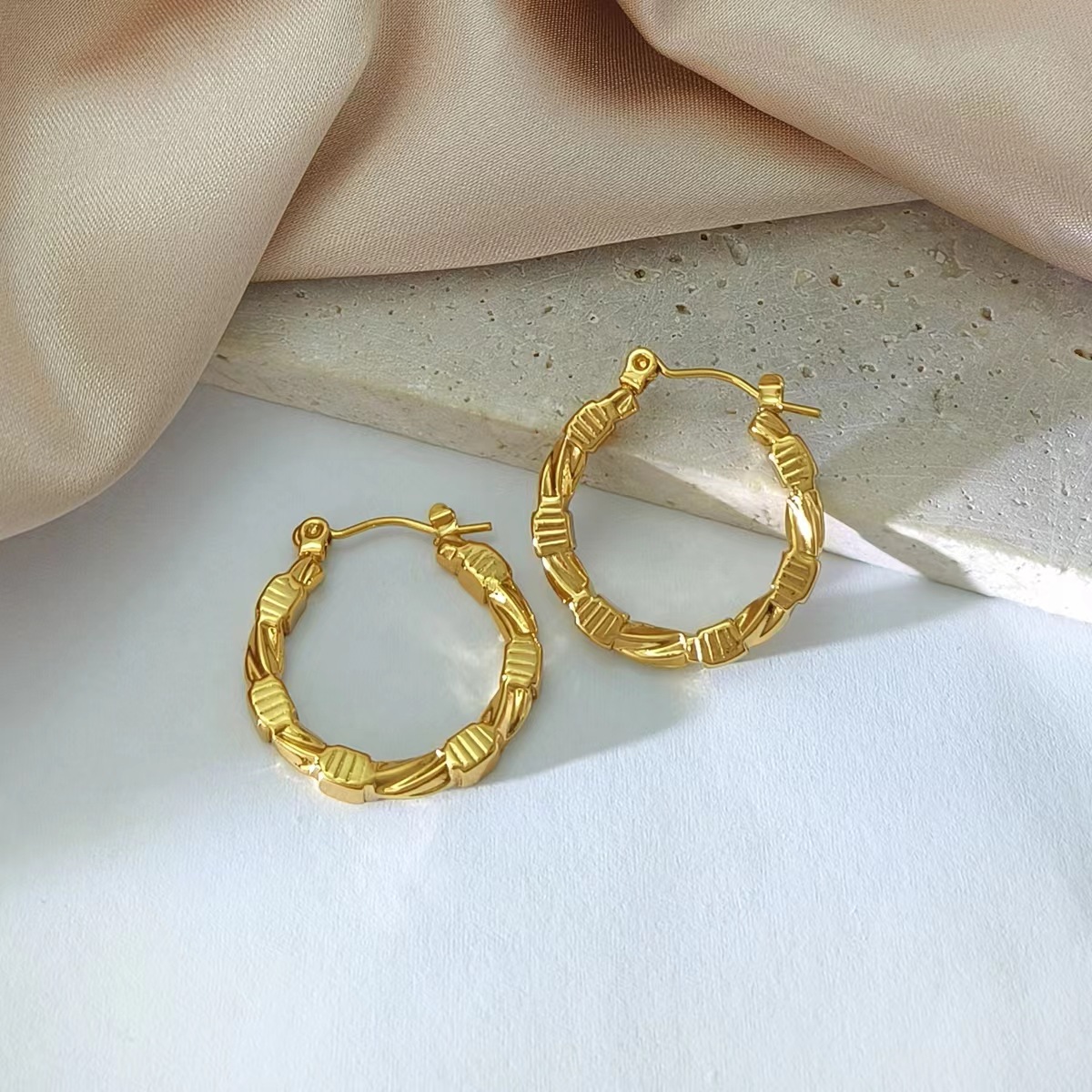 Boucle d'oreille en acier inoxydable Dangle, Acier inoxydable 304, Plaqué or 18K, bijoux de mode & pour femme, Vendu par paire