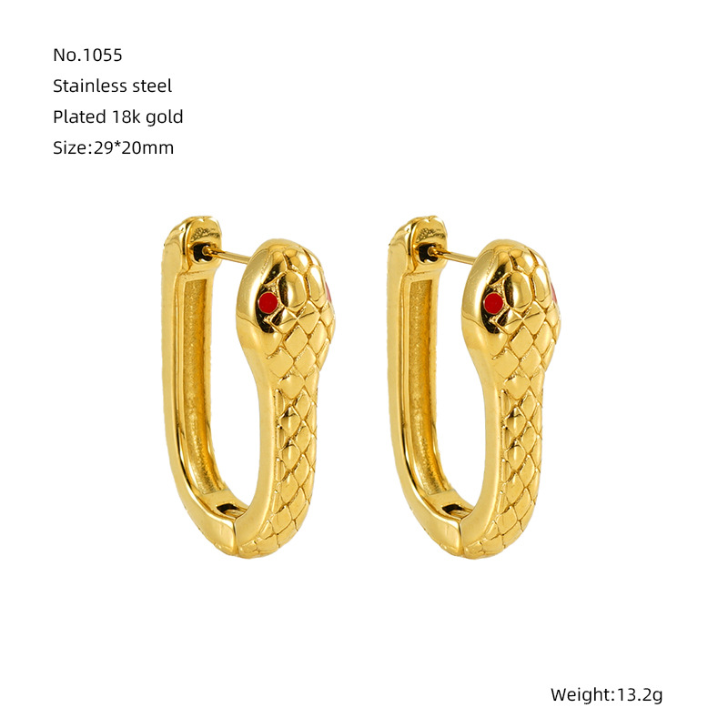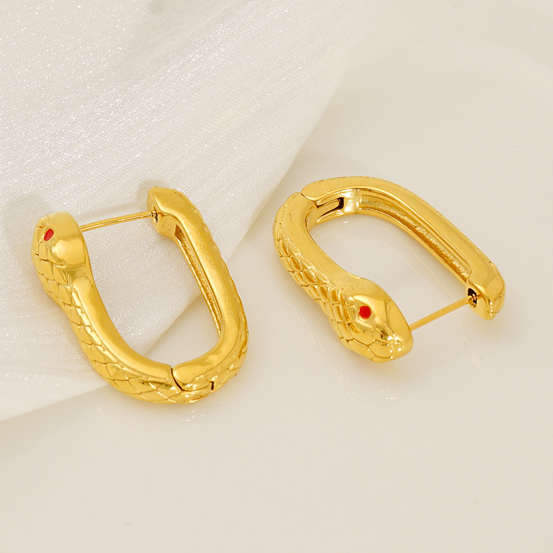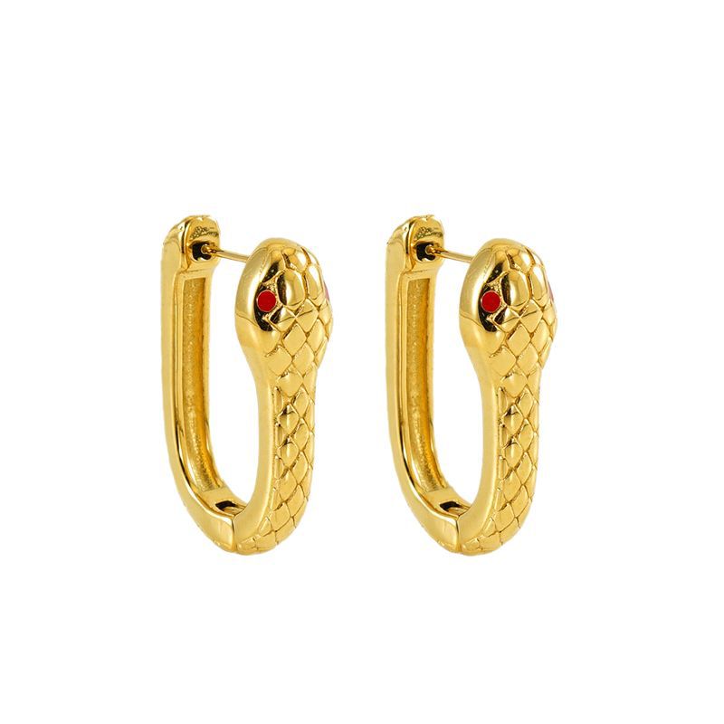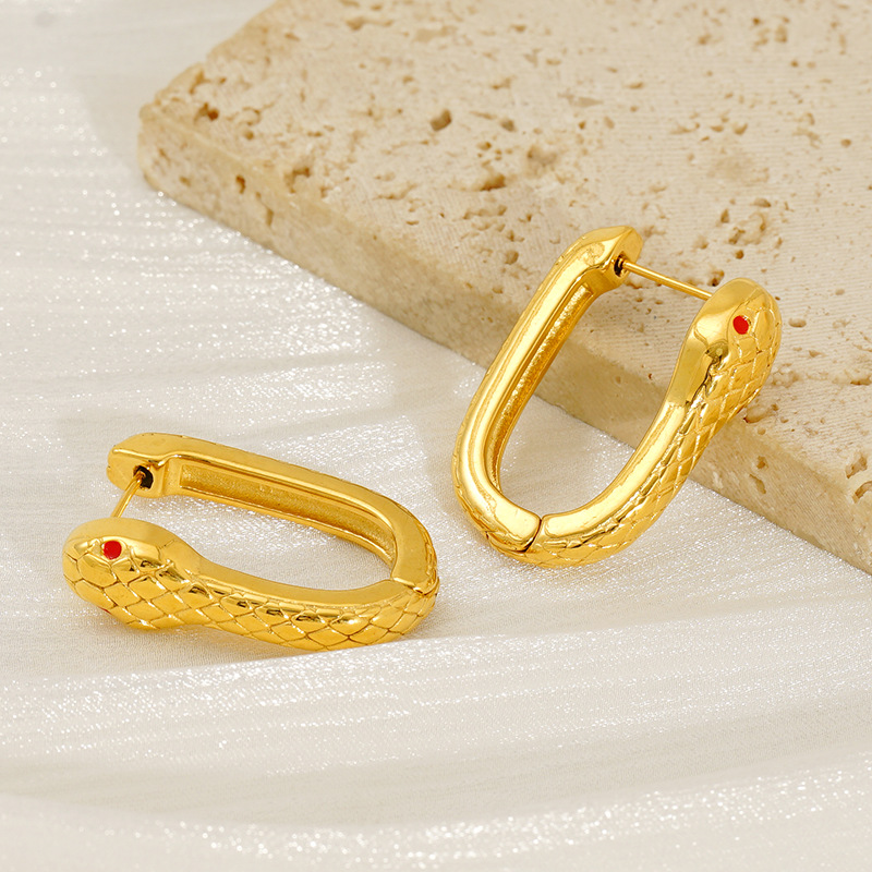 Boucle d'oreille en acier inoxydable Dangle, Acier inoxydable 304, serpent, Plaqué or 18K, bijoux de mode & pour femme & émail, Vendu par paire