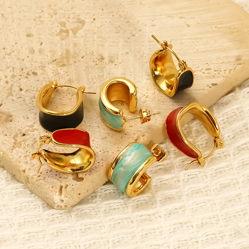 Boucle d'oreille en acier inoxydable Dangle, Acier inoxydable 304, Plaqué or 18K, styles différents pour le choix & pour femme & émail, plus de couleurs à choisir, Vendu par paire