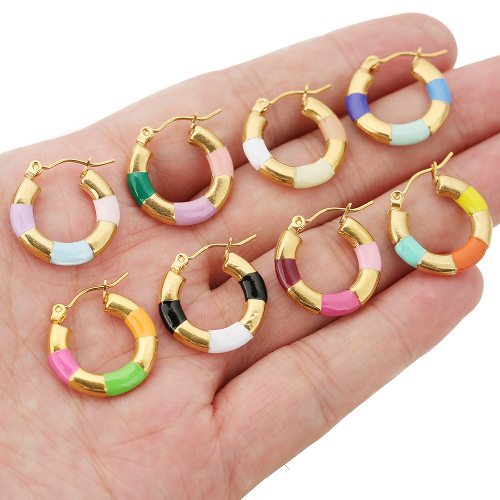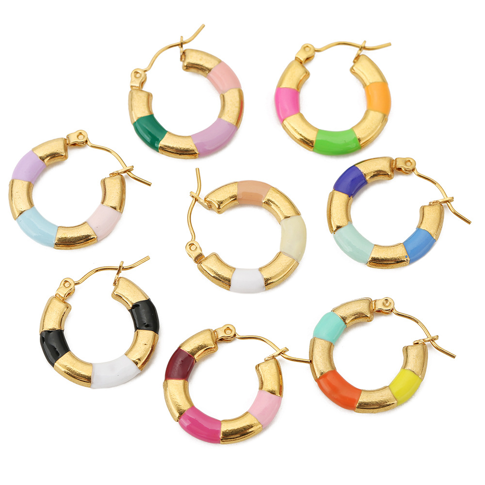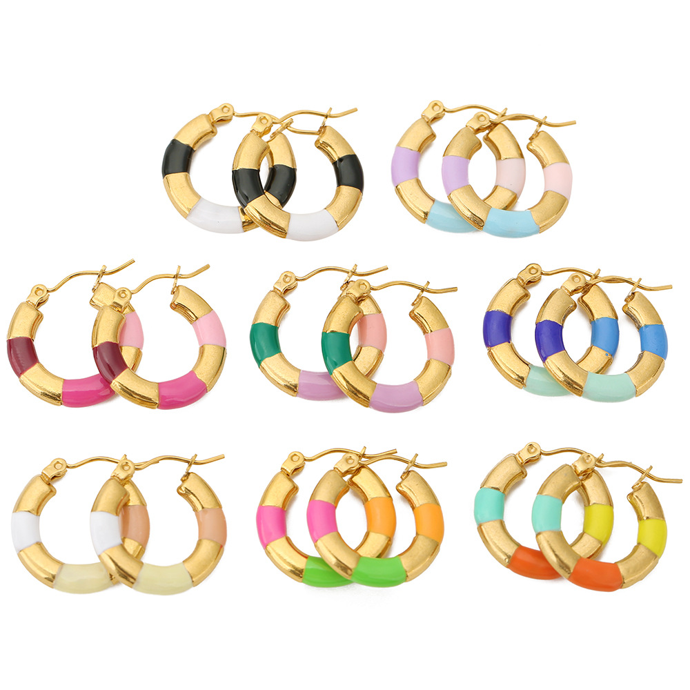 Boucle d'oreille en acier inoxydable Dangle, Acier inoxydable 304, Placage de couleur d'or, bijoux de mode & pour femme & émail, plus de couleurs à choisir, Vendu par paire