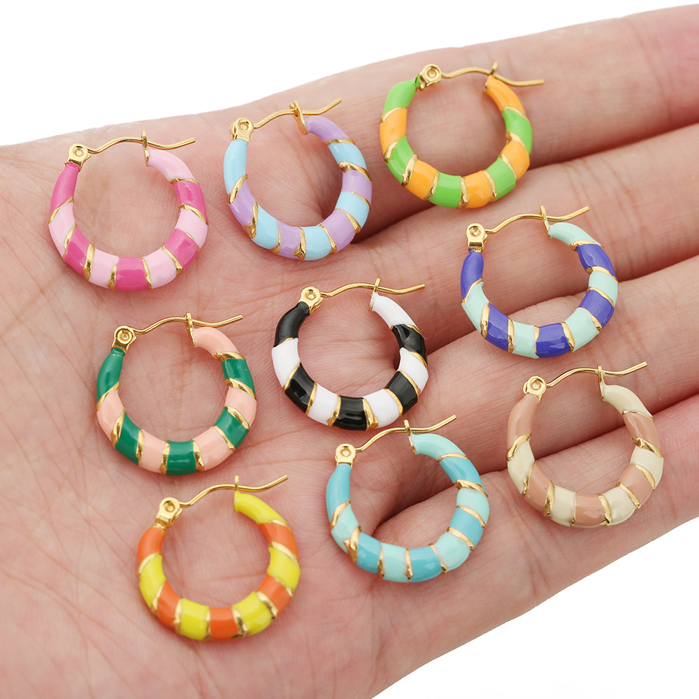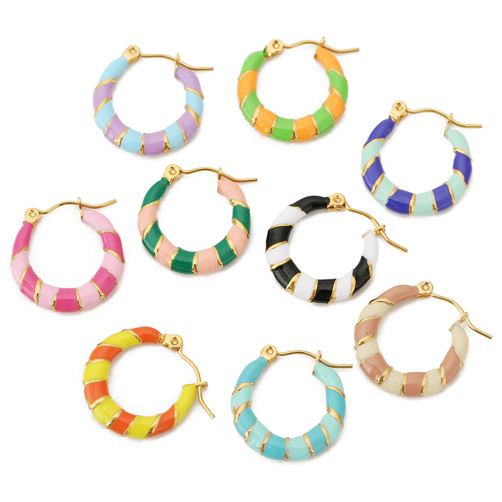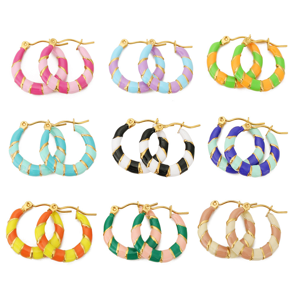 Boucle d'oreille en acier inoxydable Dangle, Acier inoxydable 304, Placage de couleur d'or, bijoux de mode & pour femme & émail, plus de couleurs à choisir, Vendu par paire