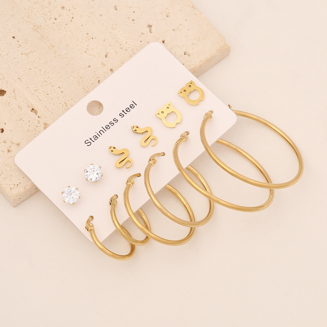 Boucle d'oreille en acier inoxydable Hoop, pour femme & avec strass, couleur originale Vendu par paire