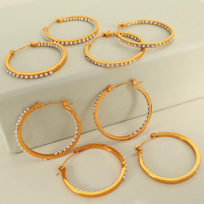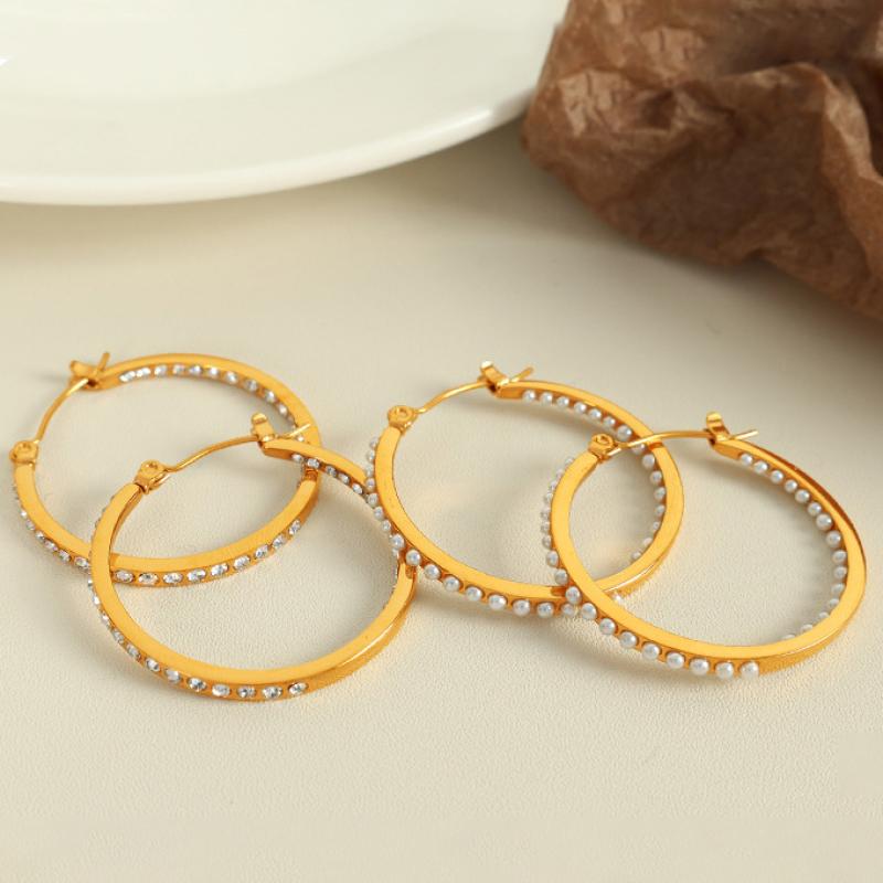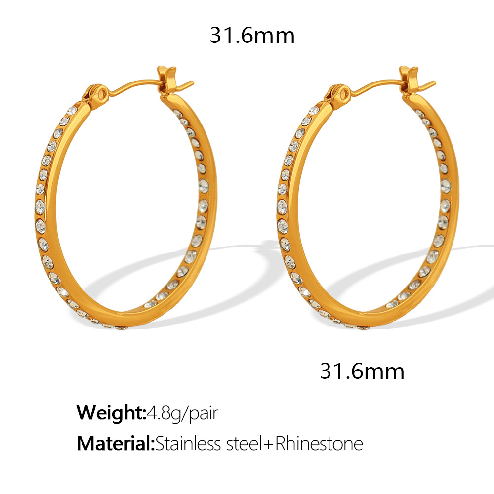 Boucle d'oreille en acier inoxydable Hoop, acier inoxydable boucle d'oreille anneau, avec strass, Vendu par paire