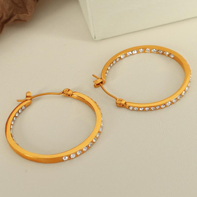 Boucle d'oreille en acier inoxydable Hoop, acier inoxydable boucle d'oreille anneau, avec strass, doré, Vendu par paire