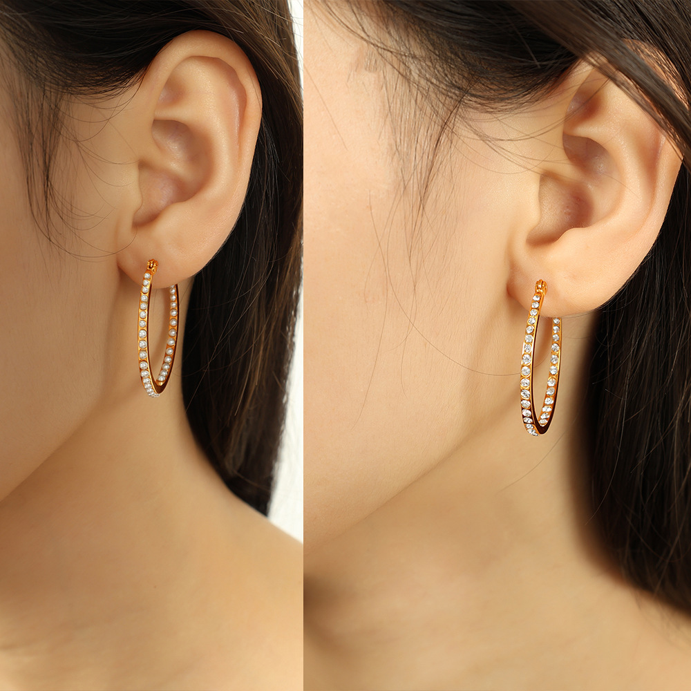 Boucle d'oreille en acier inoxydable Hoop, acier inoxydable boucle d'oreille anneau, ovale, avec strass, Vendu par paire