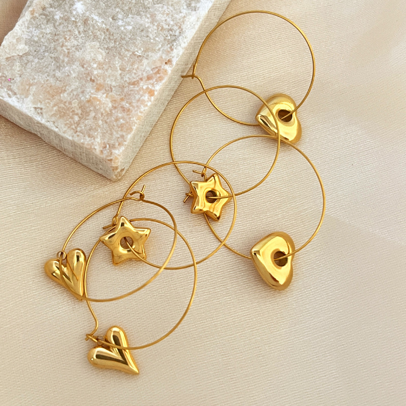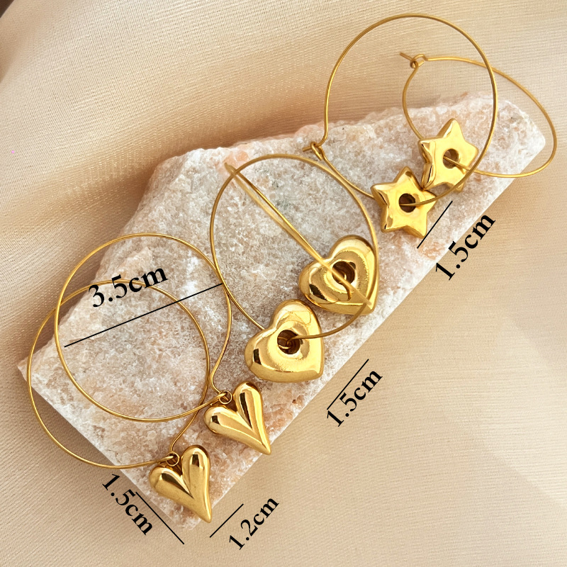 Boucle d'oreille en acier inoxydable Hoop, coeur, multiple tailles pour le choix, couleur originale, Vendu par paire