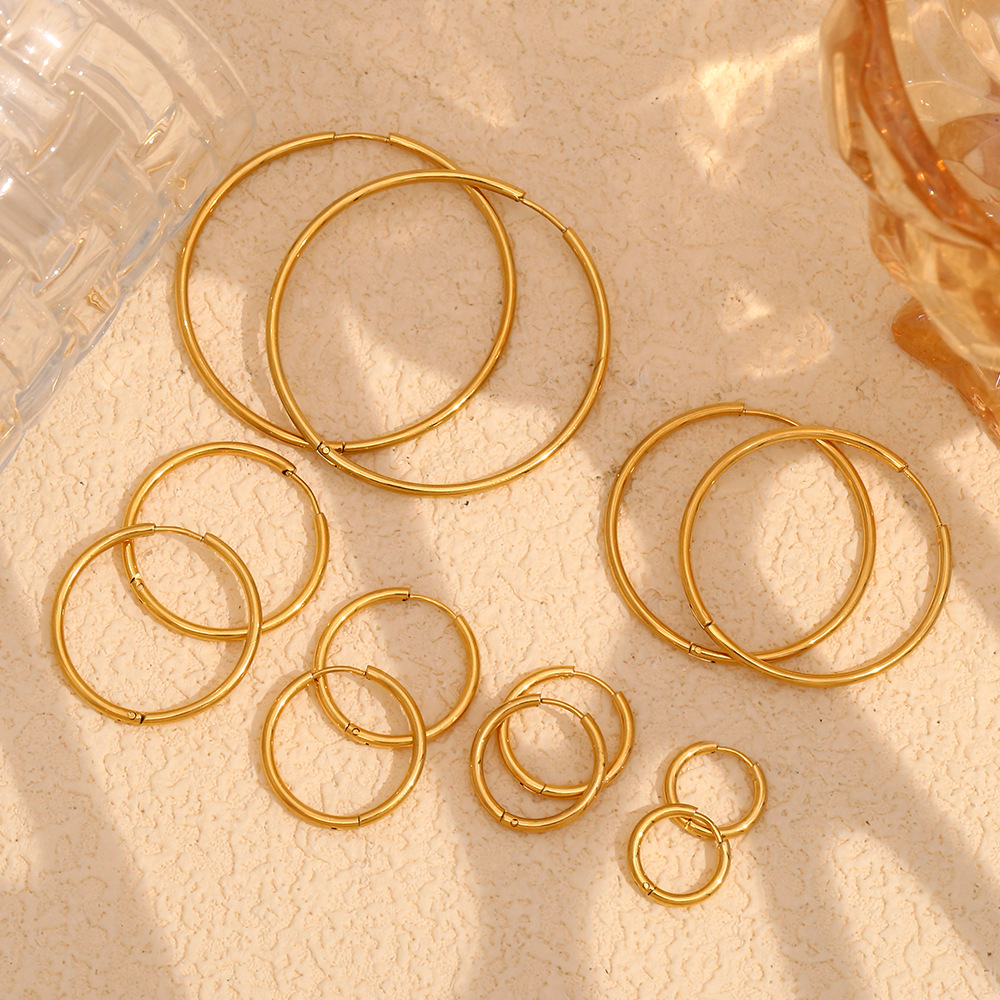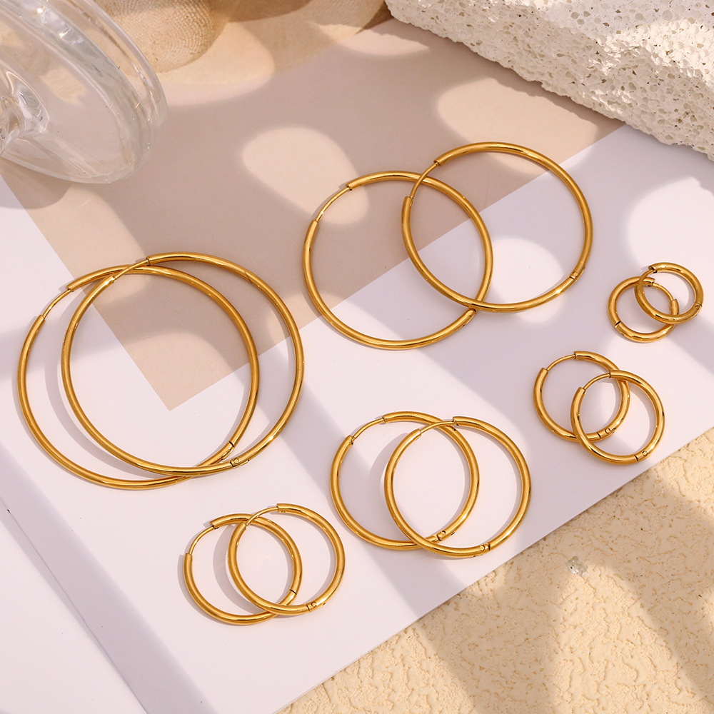Boucle d'oreille en acier inoxydable Hoop, Acier inoxydable 304, Plaqué or 18K, bijoux de mode & normes différentes pour le choix & pour femme, Vendu par paire