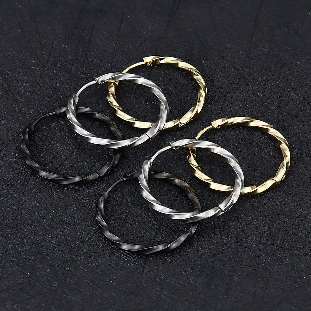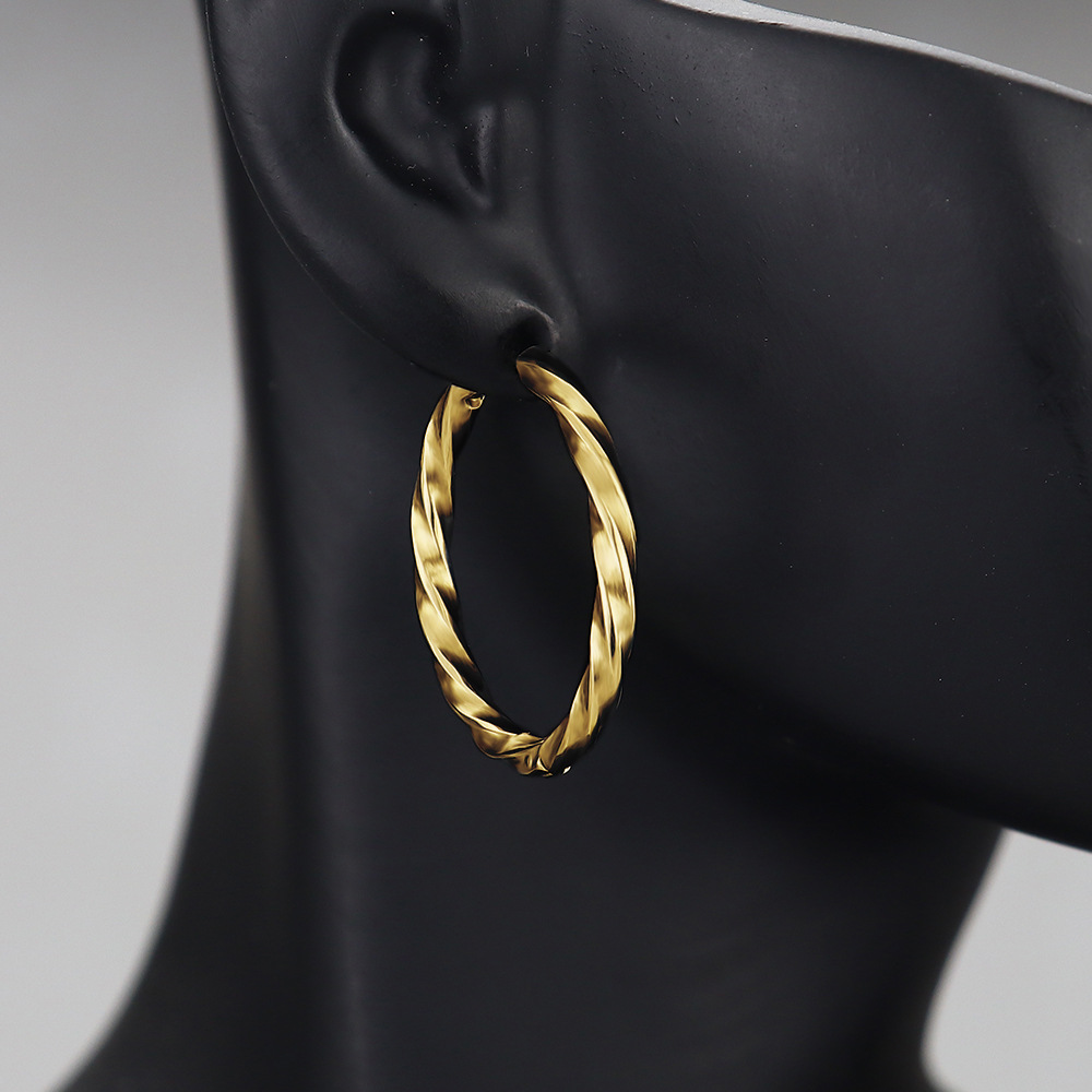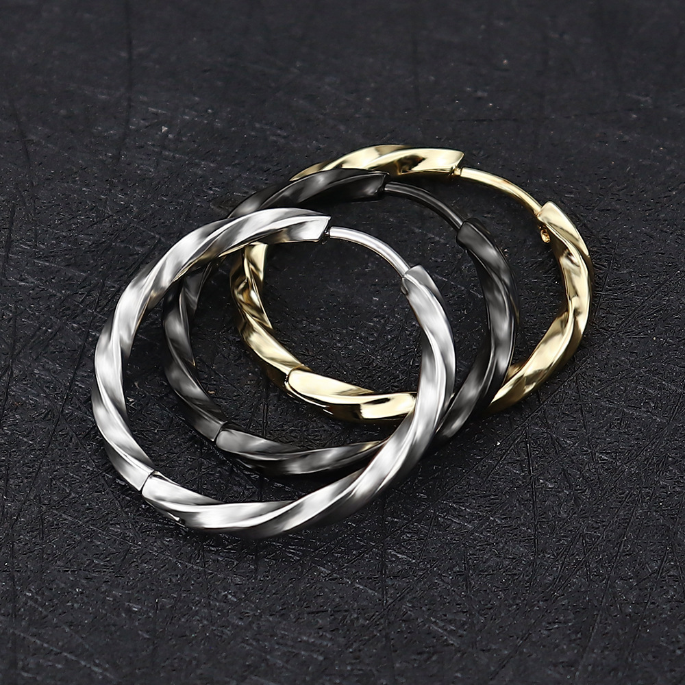 Boucle d'oreille en acier inoxydable Hoop, couleur originale, 35mm, Vendu par paire