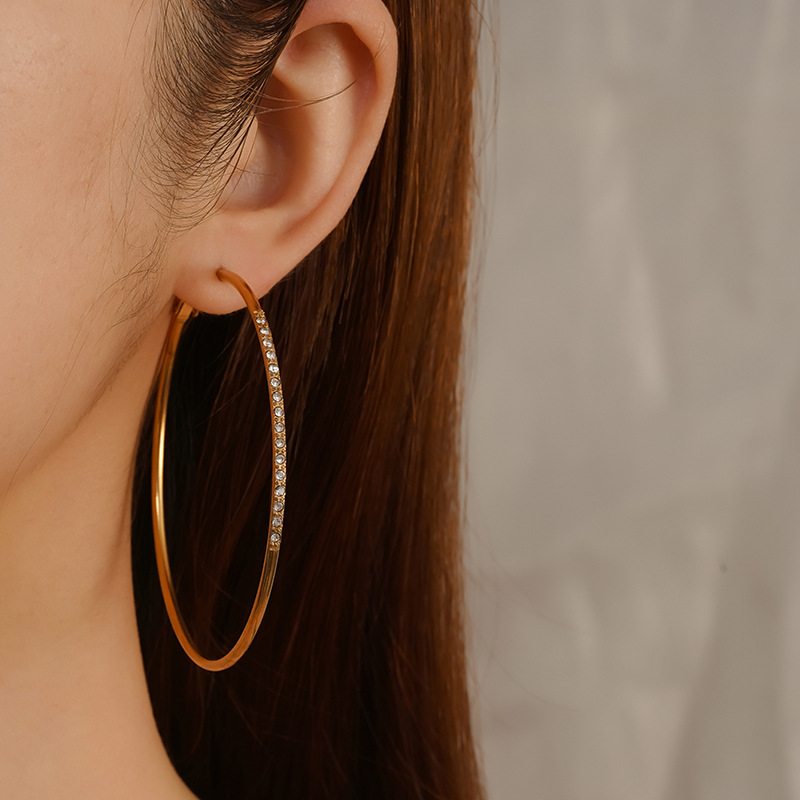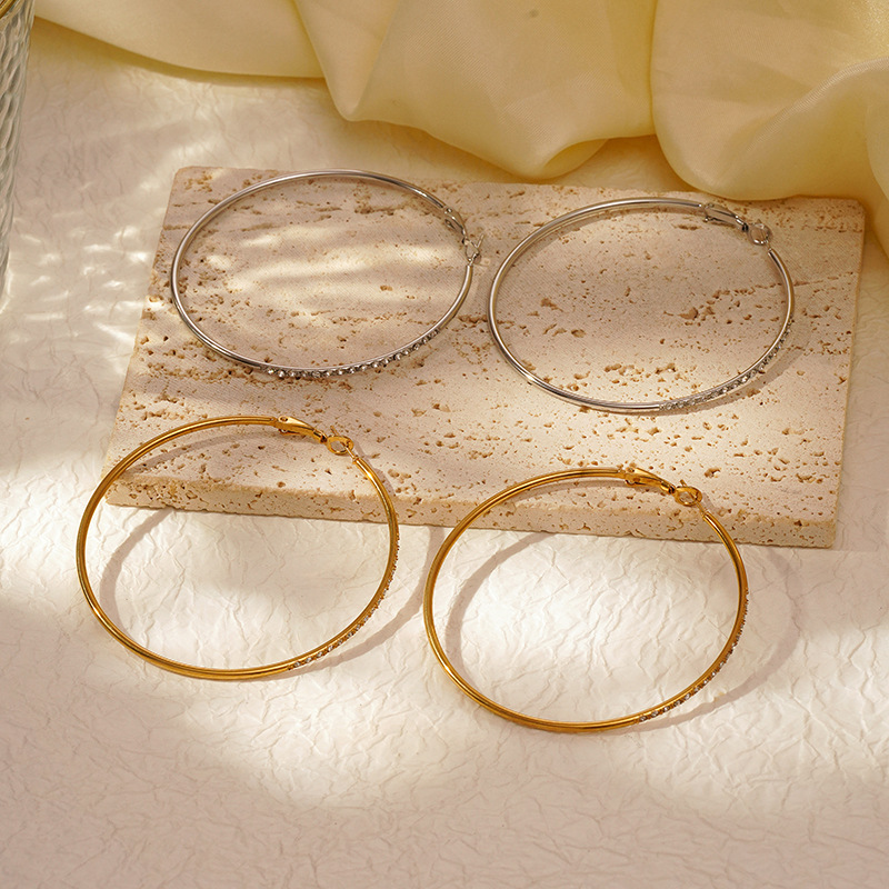 Boucle d'oreille en acier inoxydable Hoop, pour femme & avec strass, couleur originale Vendu par paire